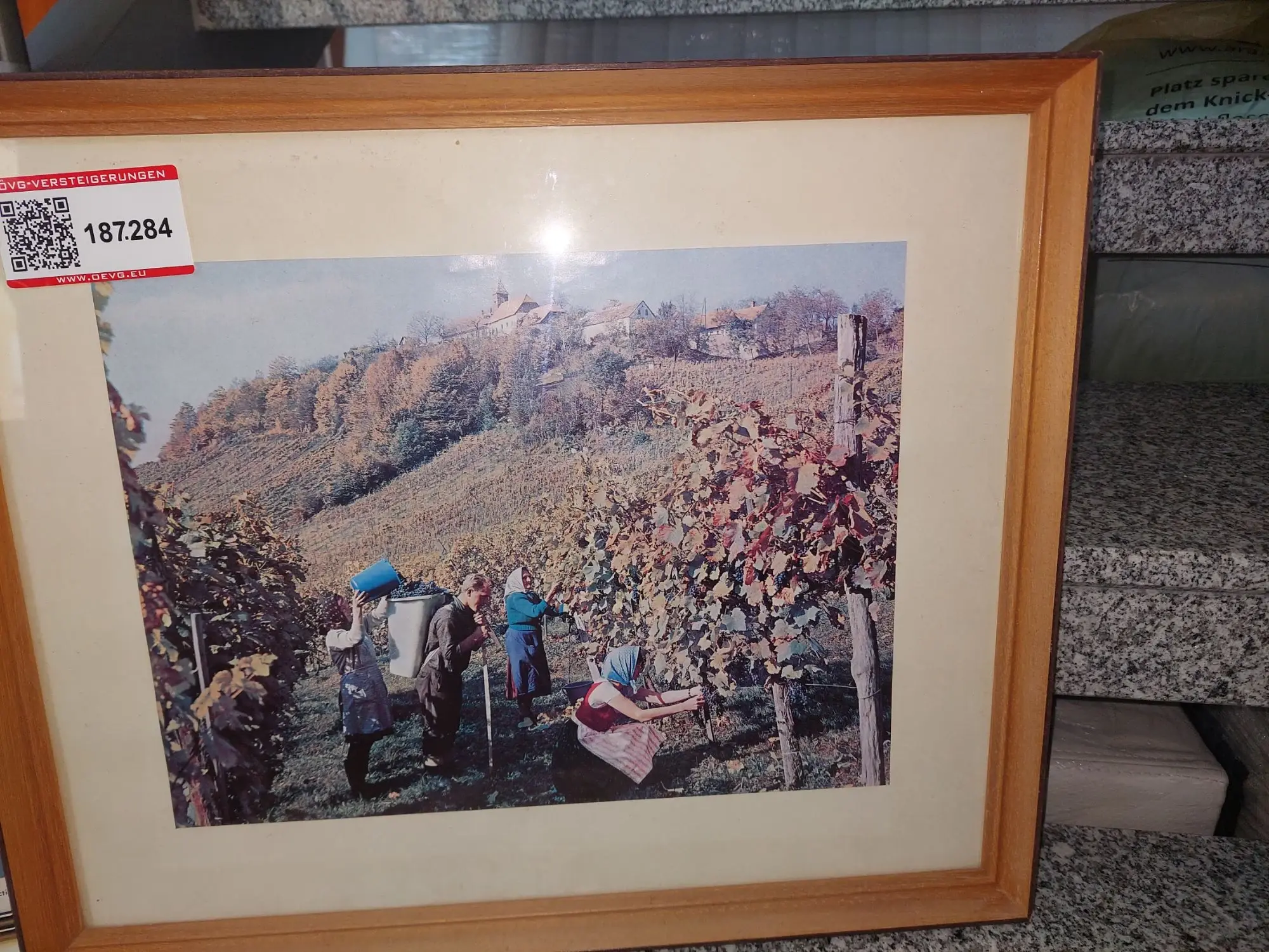 187.284: 1 Stk. Bild Motiv Weinernte Rahmen b 45 x h 37 cm