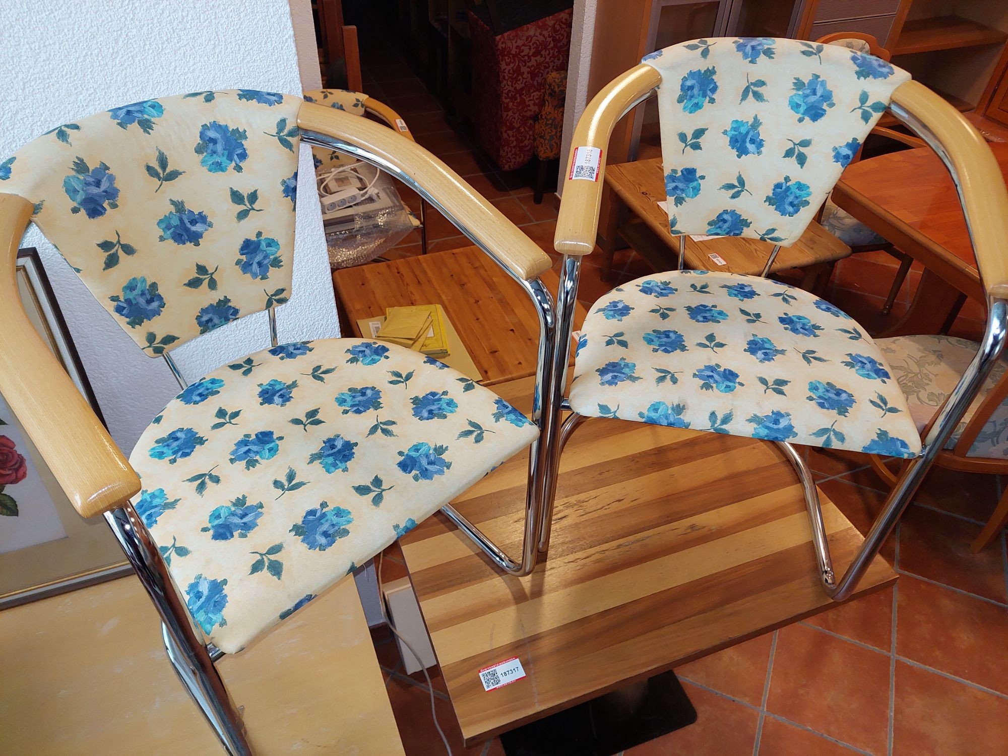 187.318: 2 Stk. Stabile Rohrrahmen-Sessel verchromt, Sitz/Rückenle