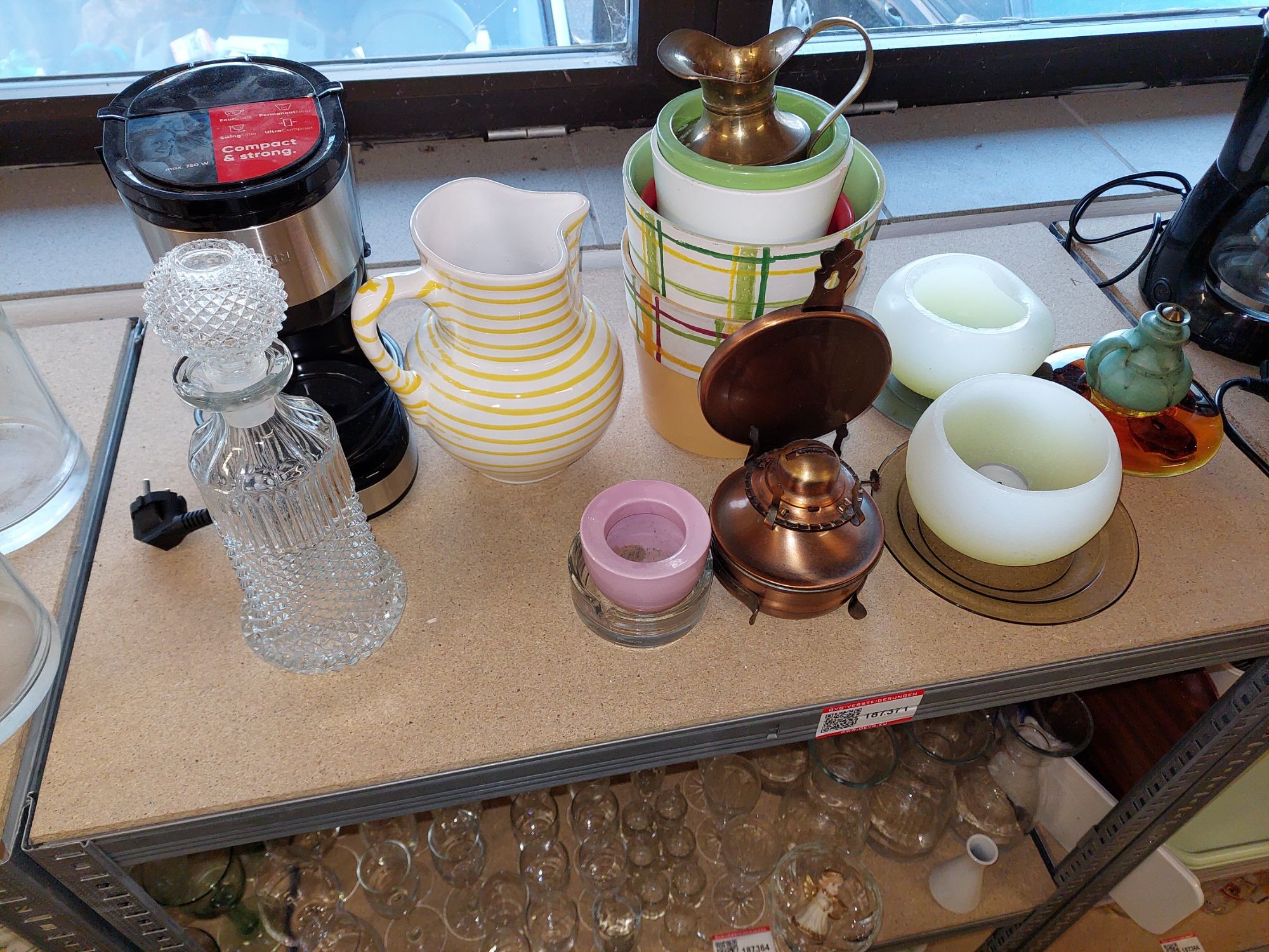 187.371: 1 Posten Kaf­fee­ma­schi­ne, Krug, Ker­zen­licht div. (Ein Regalabteil )