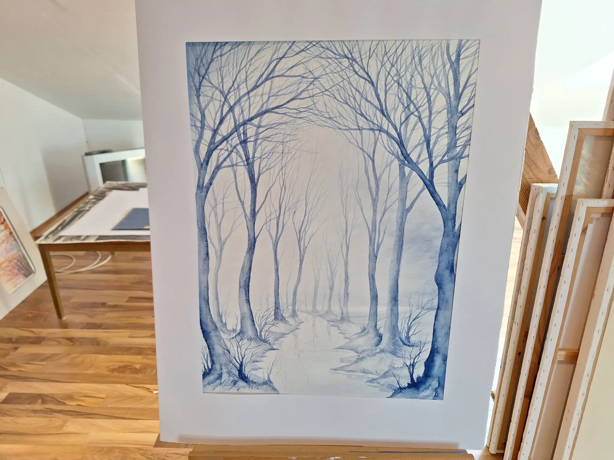 80 x 60 cm, Tin­te-blau, Land­schaft