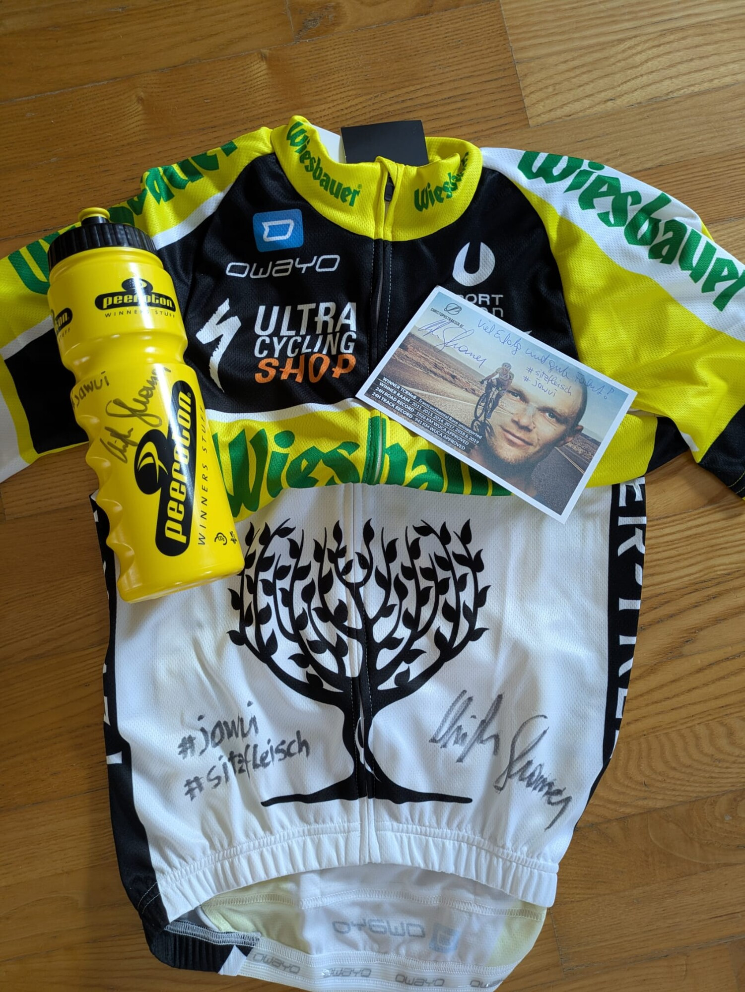 Ein signiertes original Radtrikot des 6-fachen Race Across America Siegers und 24 Stunden Weltrekordhalters Christoph Strasser, plus signierter Trinkflasche und Autogrammkarte des Ultraradlers. Eine Rennradausfahrtnach freier Wahl im Raum Weststeiermark ca 2-3 Stunden, Coachingeinheit oder Plauderstunde mit seinem ehemaligen langjährigem Mentaltrainer und Ultraradler Thomas Jaklitsch. Inklusive signierter Bücher „Coach dich selbst zu deinem besseren Ich“ und „Hilf mir meinen Lebenstraum zu erfüllen“, vom Autor Thomas Jaklitsch über die mentalen Wege zum Erfolg. Radausfahrt etc. einlösbar bis Ende 2026