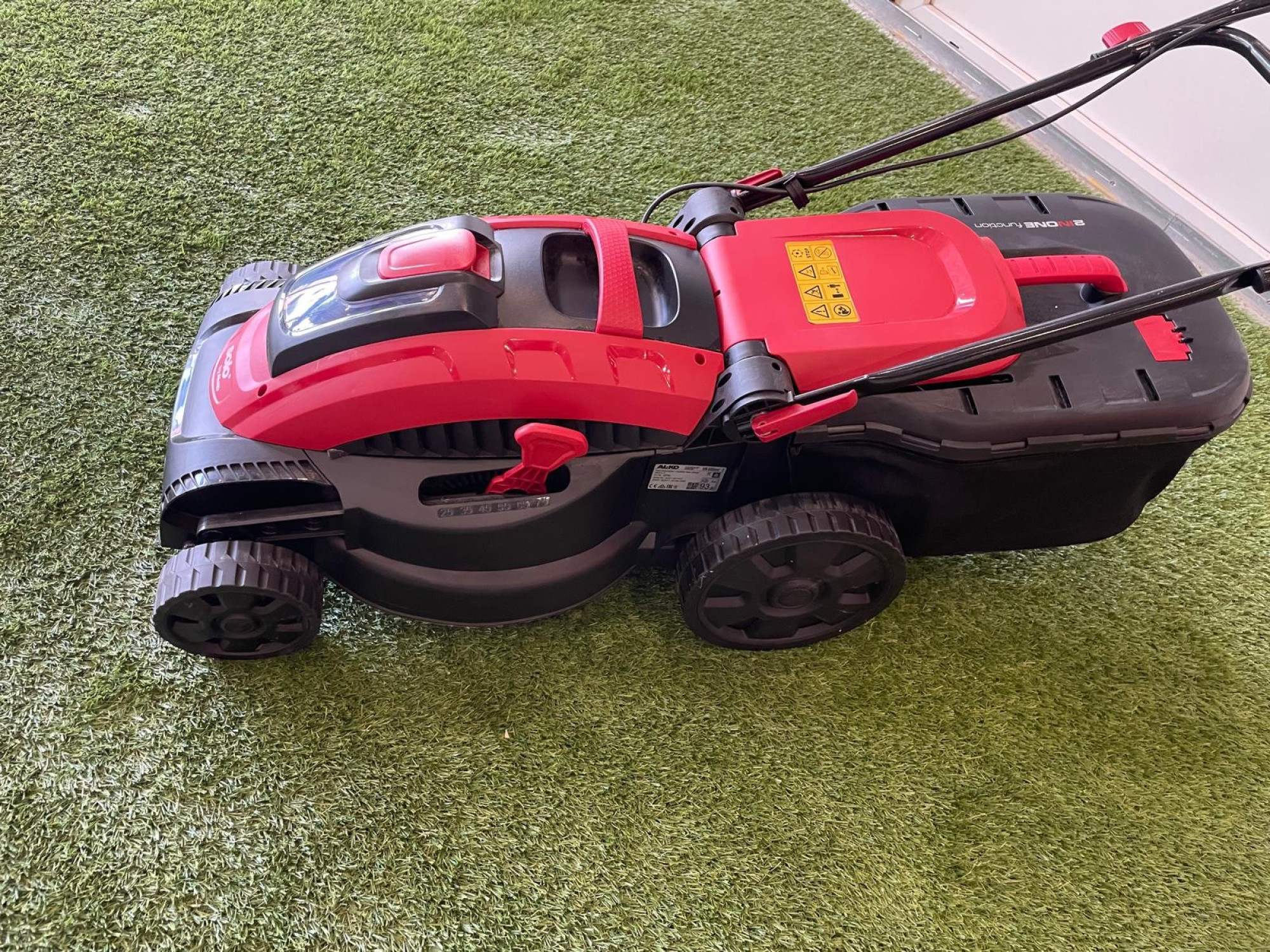 Zen­tra­le Schnitt­hö­hen­ver­stel­lung zwi­schen 25-75 mm. Sta­bi­le und leich­te Gras­fang­box aus Stoff und Kunst­stoff-Hard­top, 45 Li­ter. Gro­ße ku­gel­ge­la­ger­te Rä­der (v 150 / h 230 mm) für bes­te Trak­ti­on auch in ho­hem Gras. In­di­vi­du­ell an­pass­ba­rer Füh­rungs­holm. 36 V Li-Ion Ak­ku-Sys­tem (nicht im Lie­fer­um­fang). Sehr be­que­mer Füh­rungs­holm mit Soft­griff. In­klu­si­ve Tra­ge­griff für leich­ten Trans­port. Bat­te­rie­fach für 1 Ak­ku (4/5 oder 8 Ah). Für max. Gras­flä­che bis 650 m².