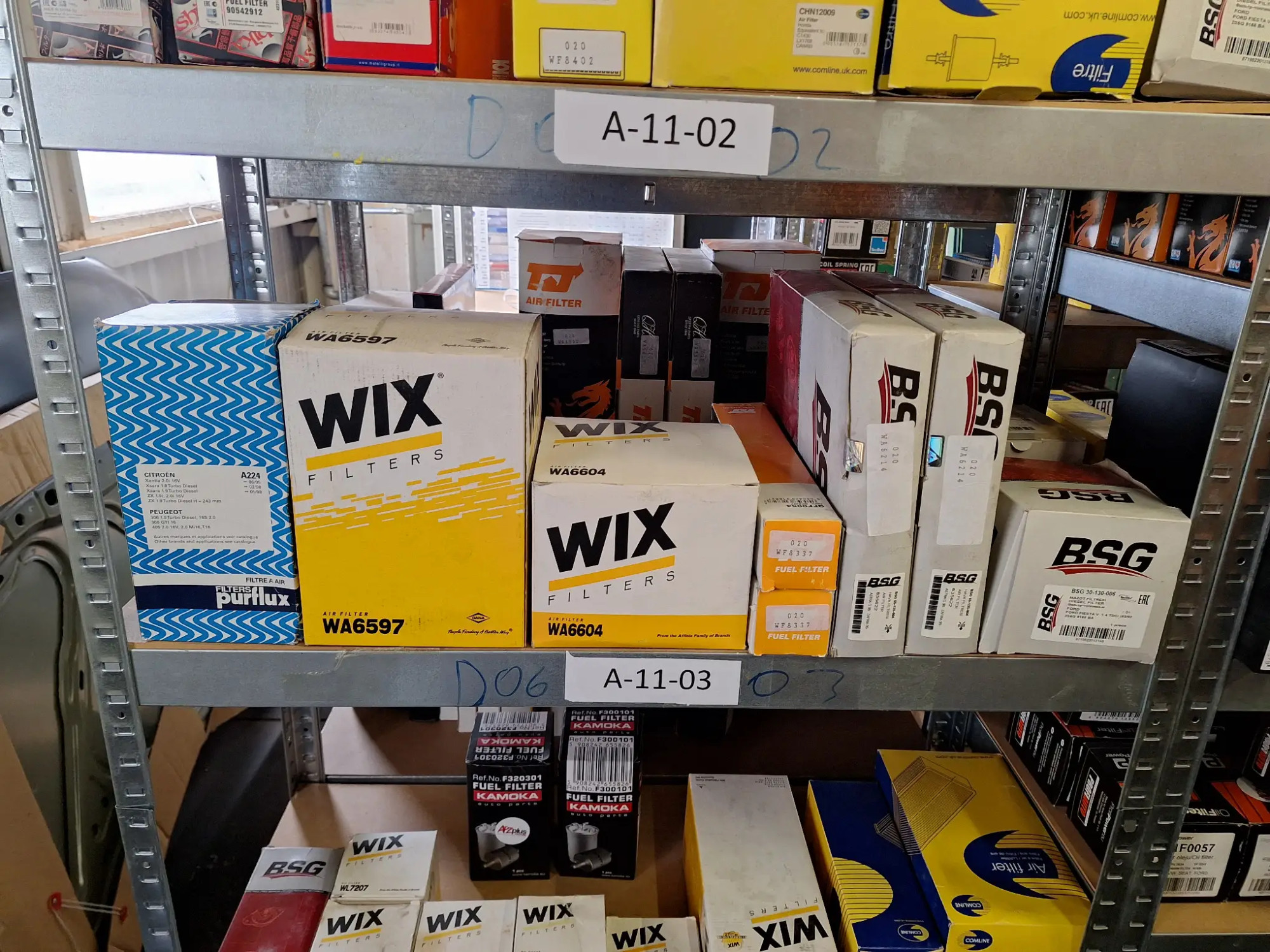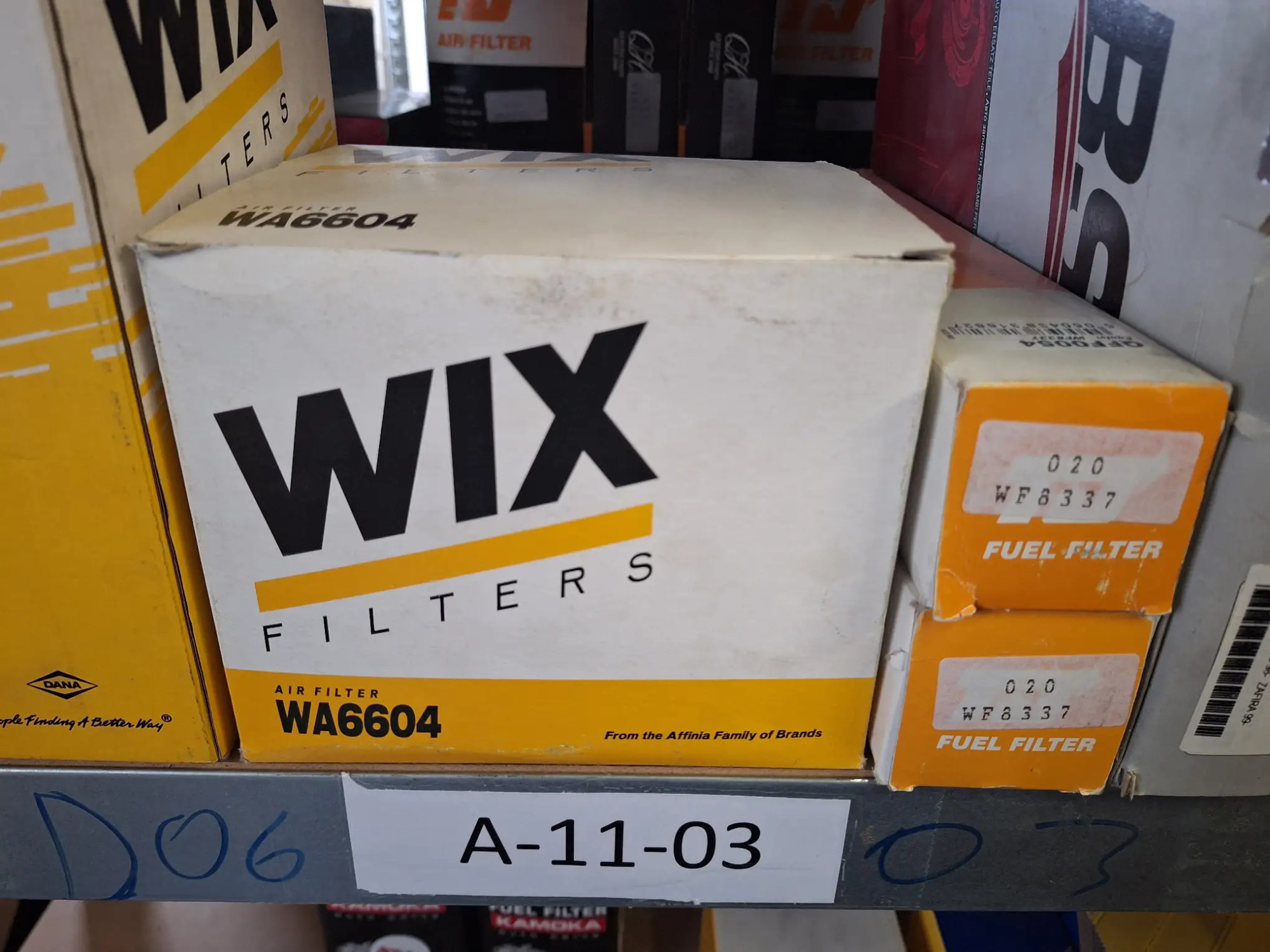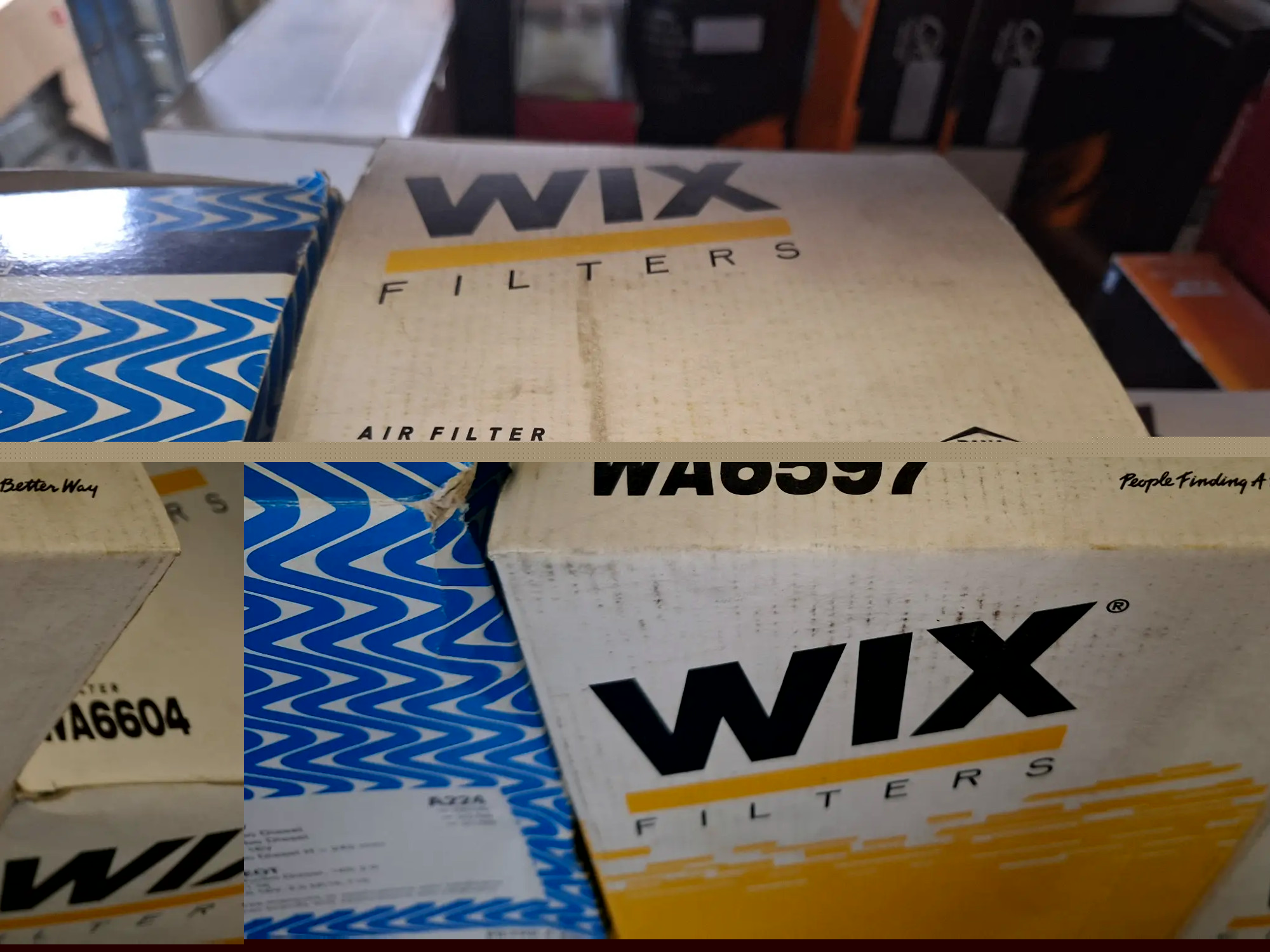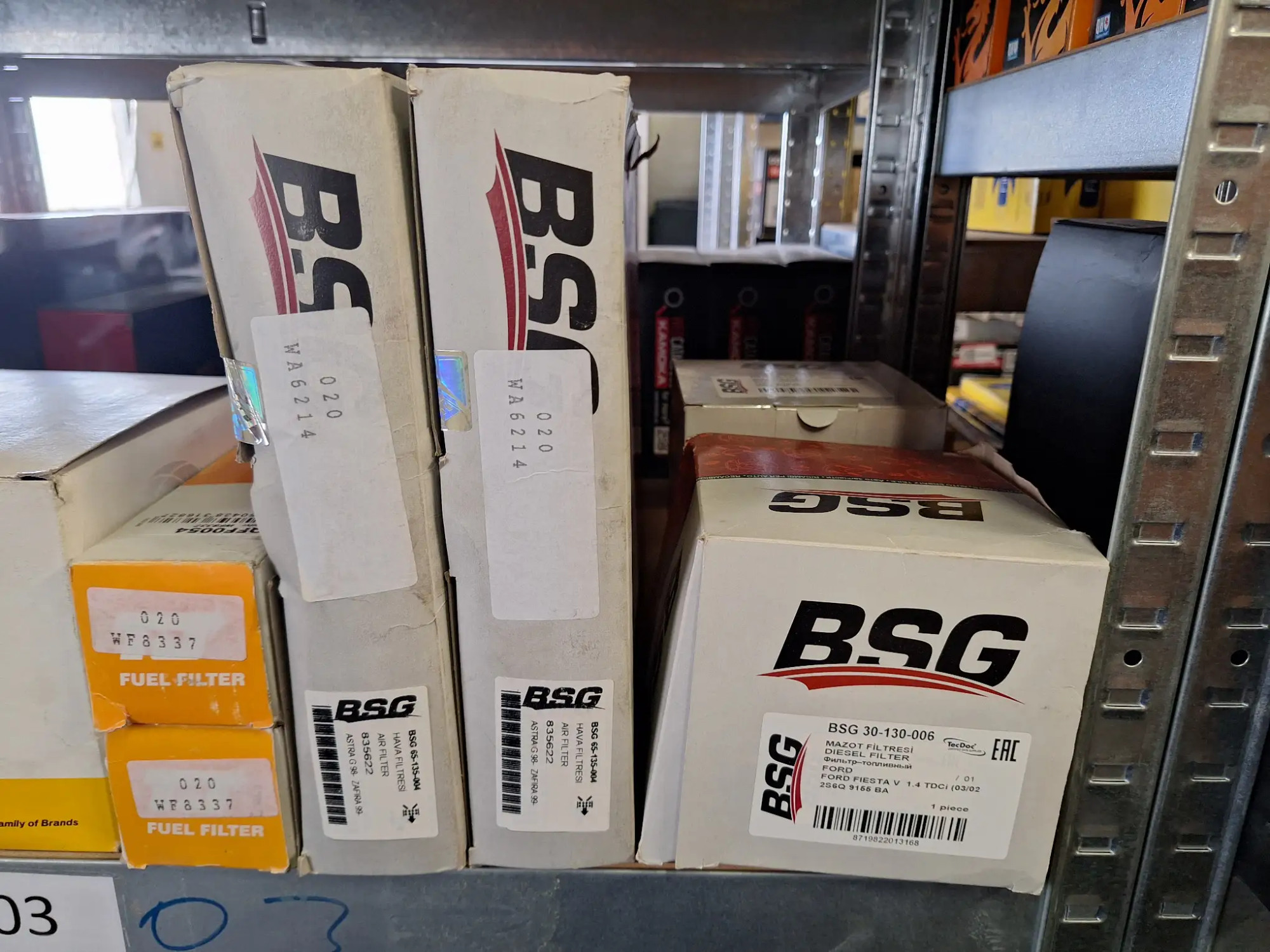 Diverse Öl- und Luftfilter, in einem Regalfach, Type siehe Fotos, ca. 8 Stk.