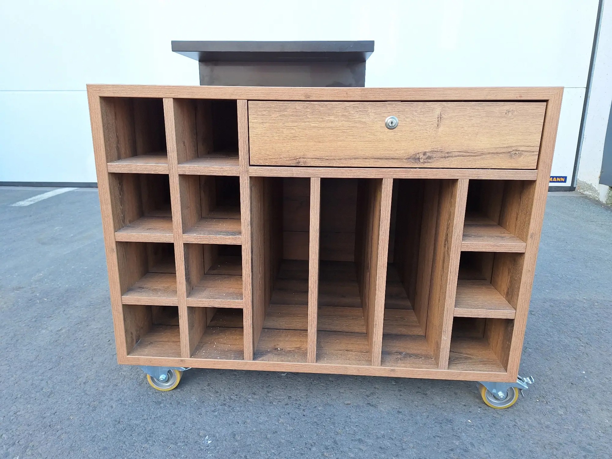 Tisch­ler­mö­bel, fahr­bar, ver­sperrt, kein Schlüs­sel vor­han­den, 90x70x80 cm