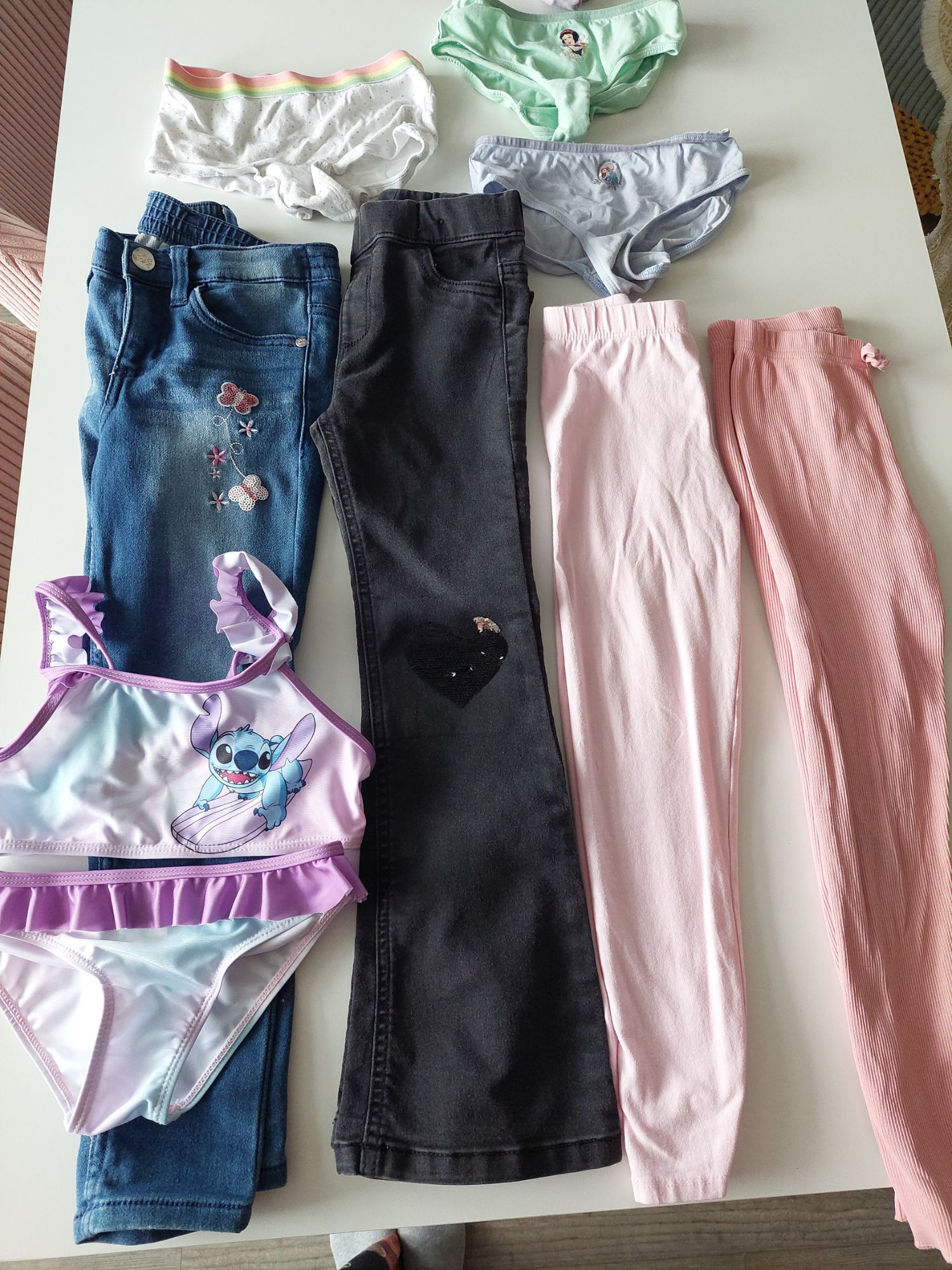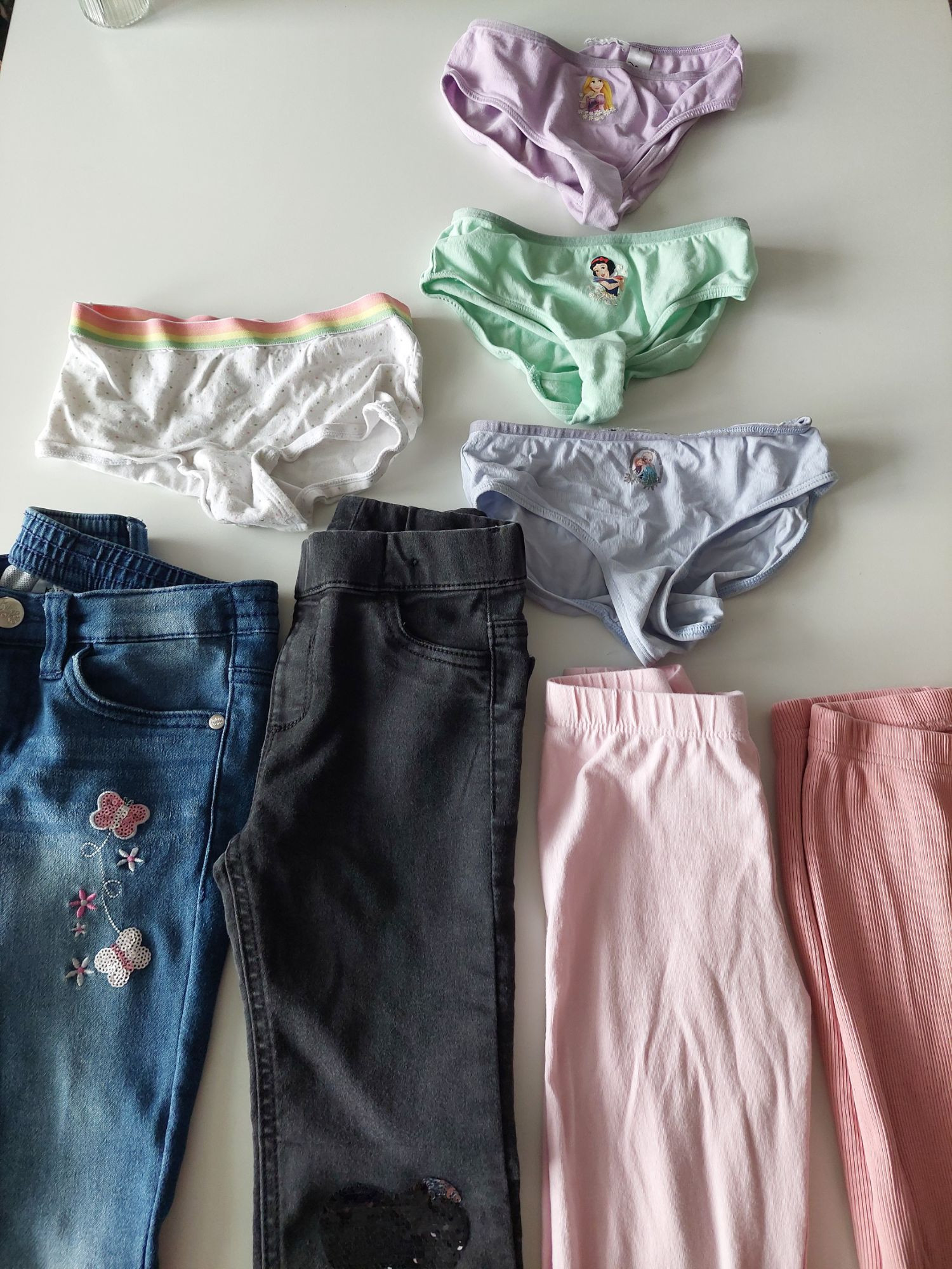 2× Jeans, 2x Leggings, 1x Bikini, 4x Unterhose - alles gebraucht, guter Zustand, Größe 122/128 - Privatverkauf - Umtausch und Rückgabe laut EU-Recht ausgeschlossen