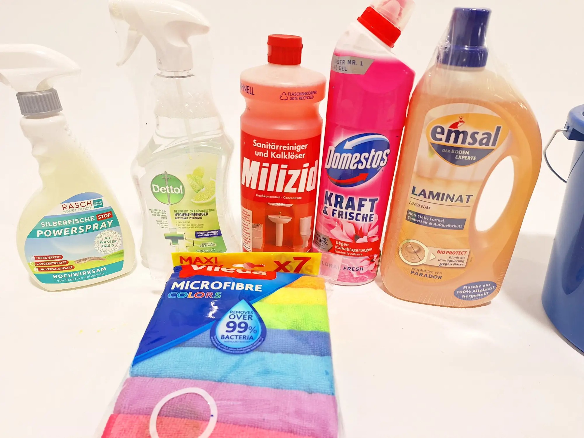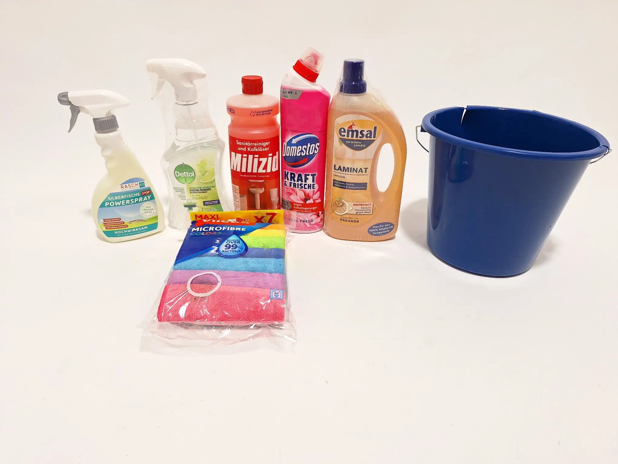 Sanitärreiniger, Lamitatreiniger, Mikrofasertücher, Silberfische Stop, Eimer leicht beschädigt siehe Bild