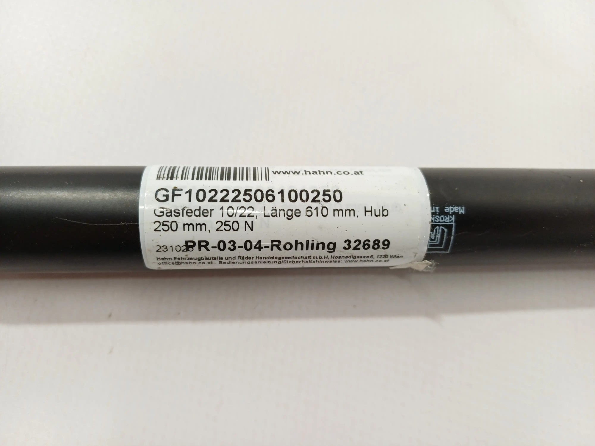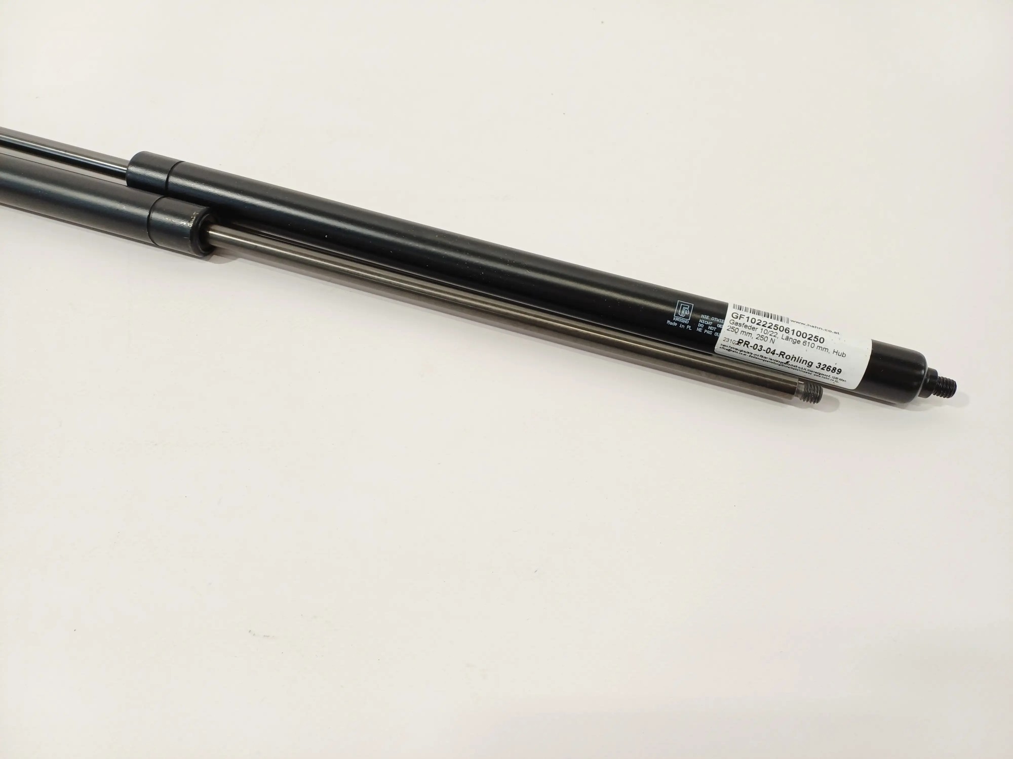 Gasfeder 10/22, Länge 610 mm, Hub 250 mm, 250 N