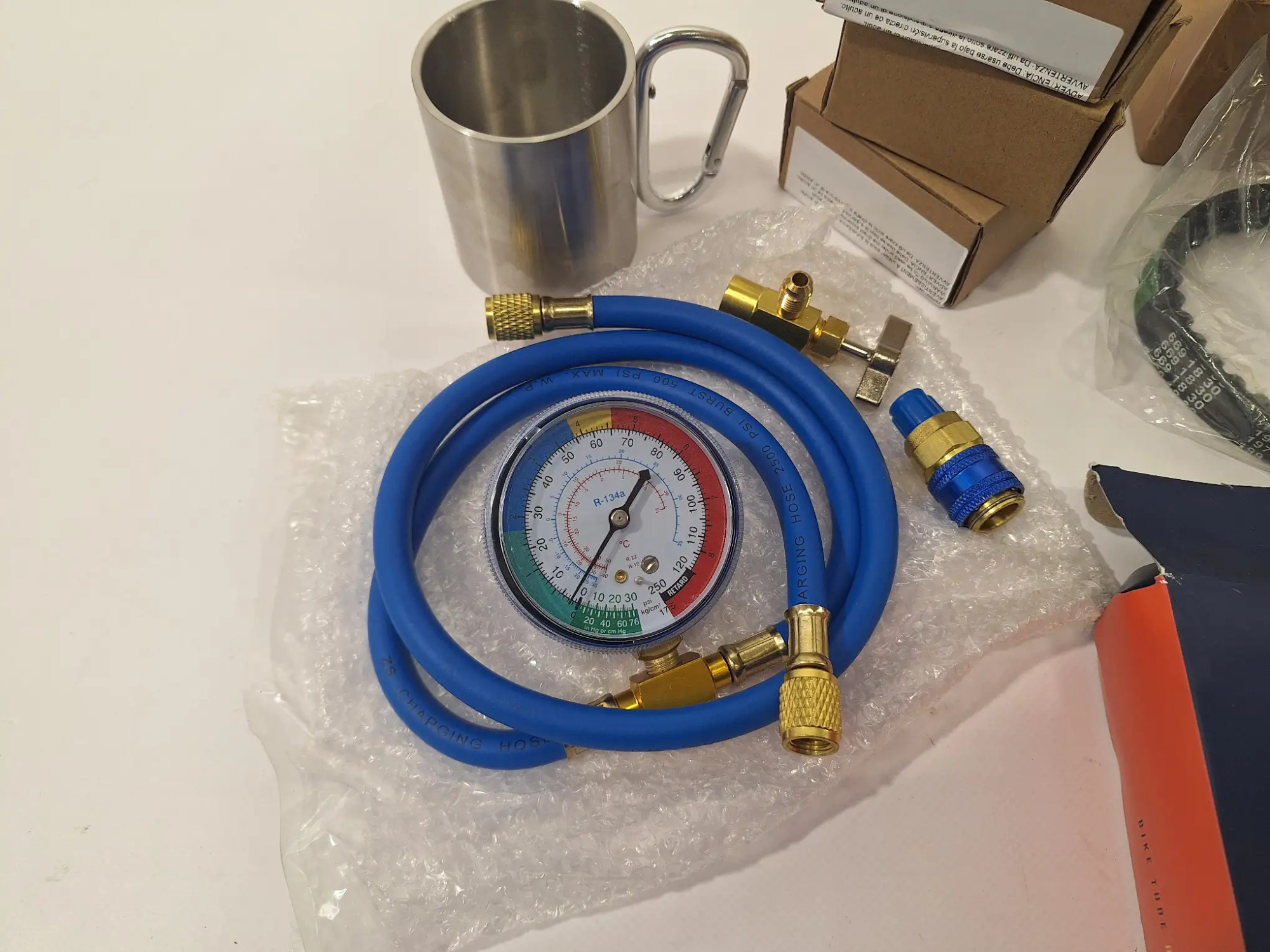 Lam­pe, Schlauch, Druck­an­zei­ge, Tas­se