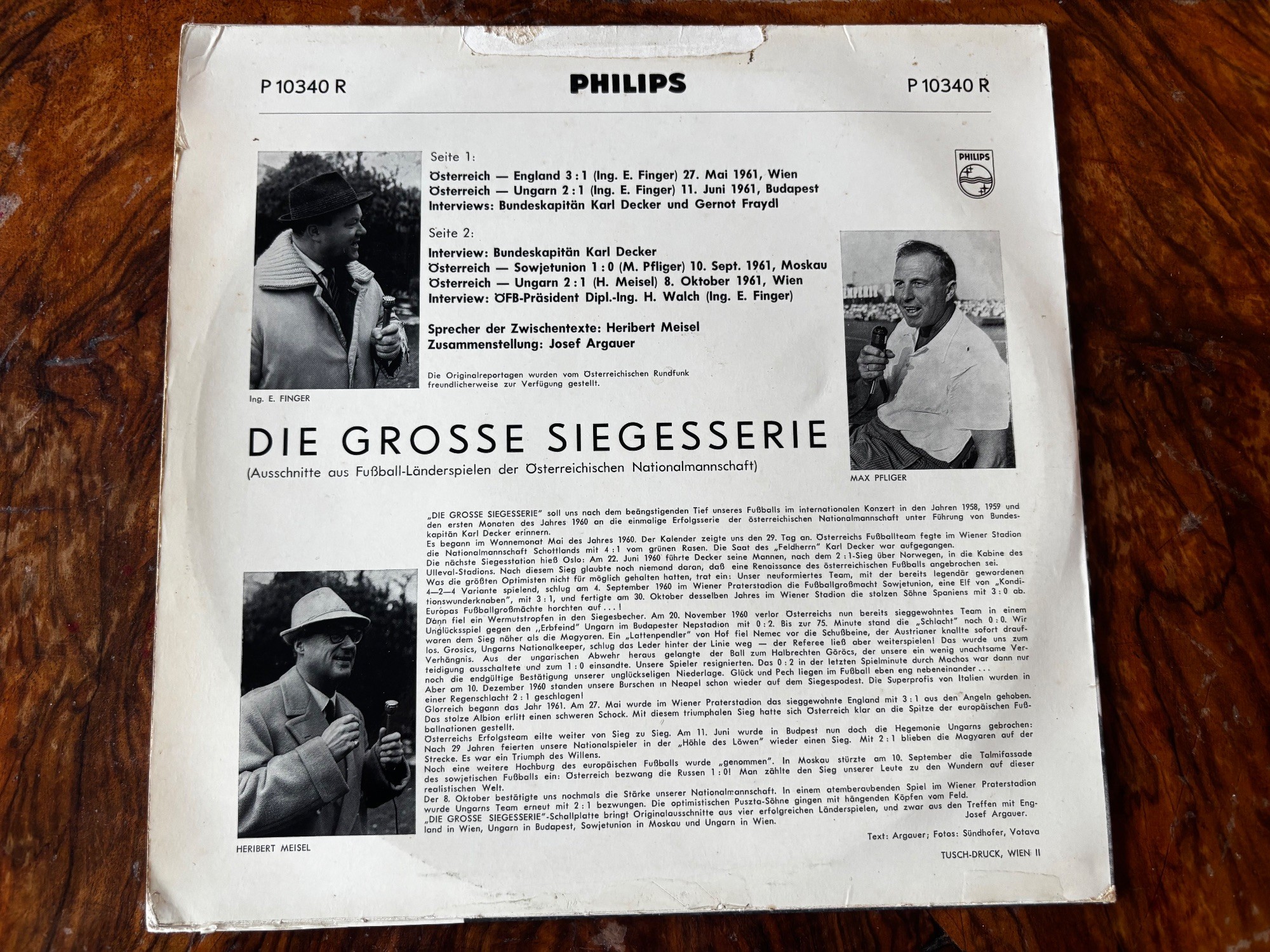 LP Die Grosse Siegesserie ÖFB Ausschnitte uas Fussball Länderspielen der österreichischen Nationalmannschaft