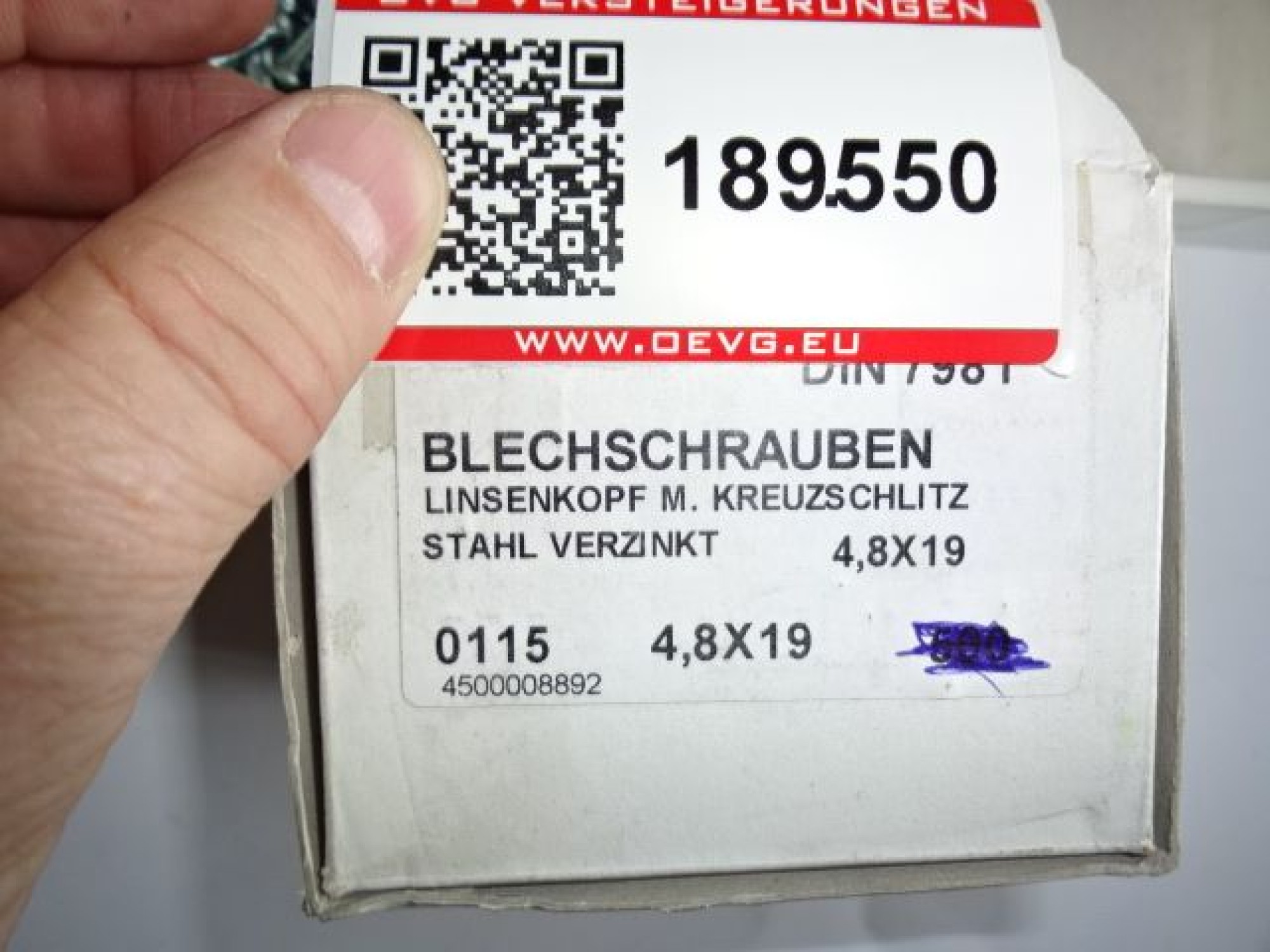 189.550: 1 Packung Blechschrauben 4,8x19mm Linsenkopf
