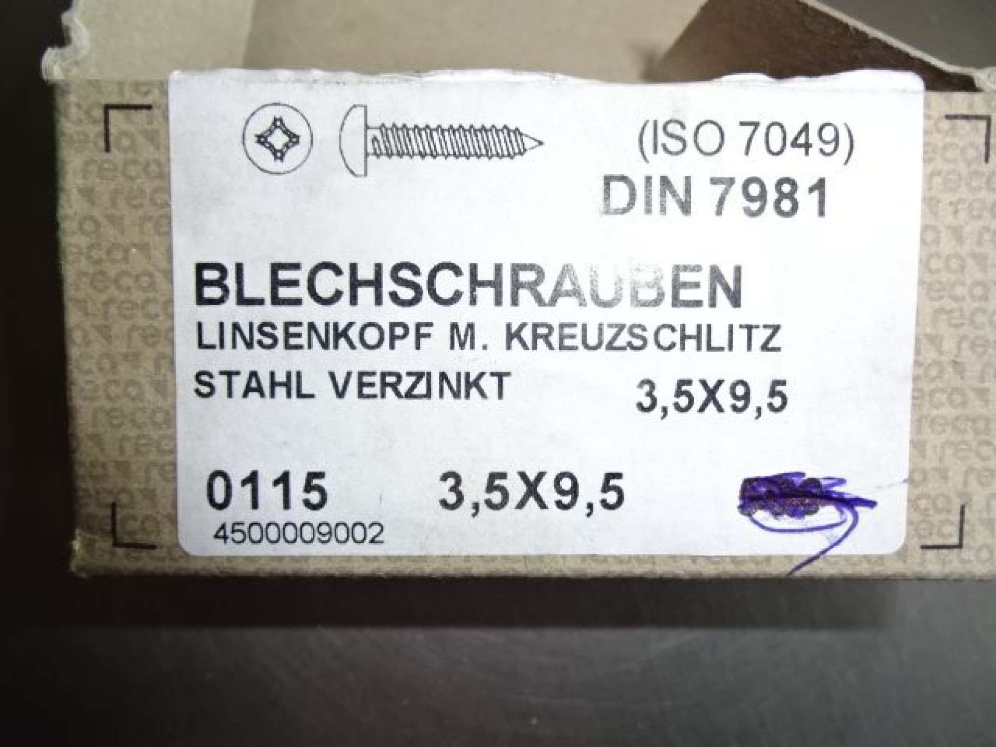 189.639: 1 Packung Blechschraube 3,5x9,5 mm Linsenkopf