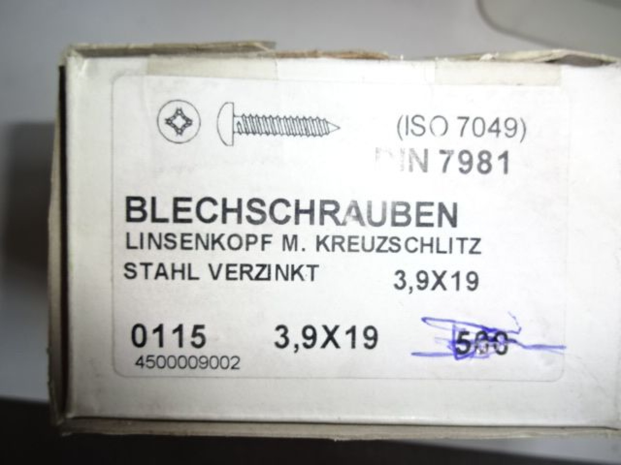 189.643: 1 Packung Blechschraube 3,9x19 mm Linsenkopf