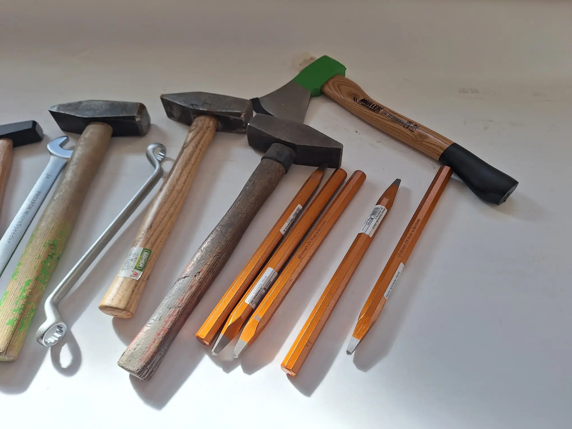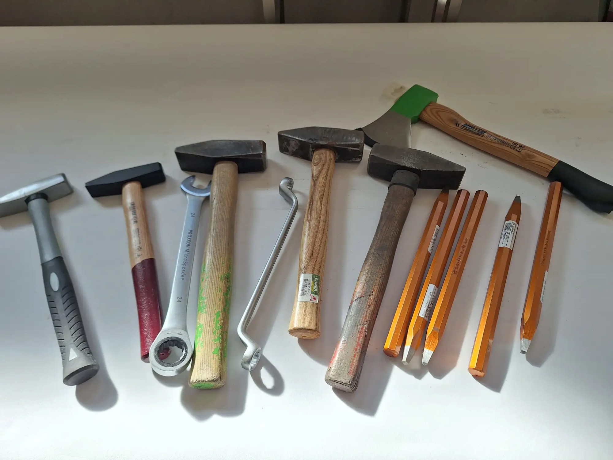 Hämmer, Axt, Meißel, Schlüssel