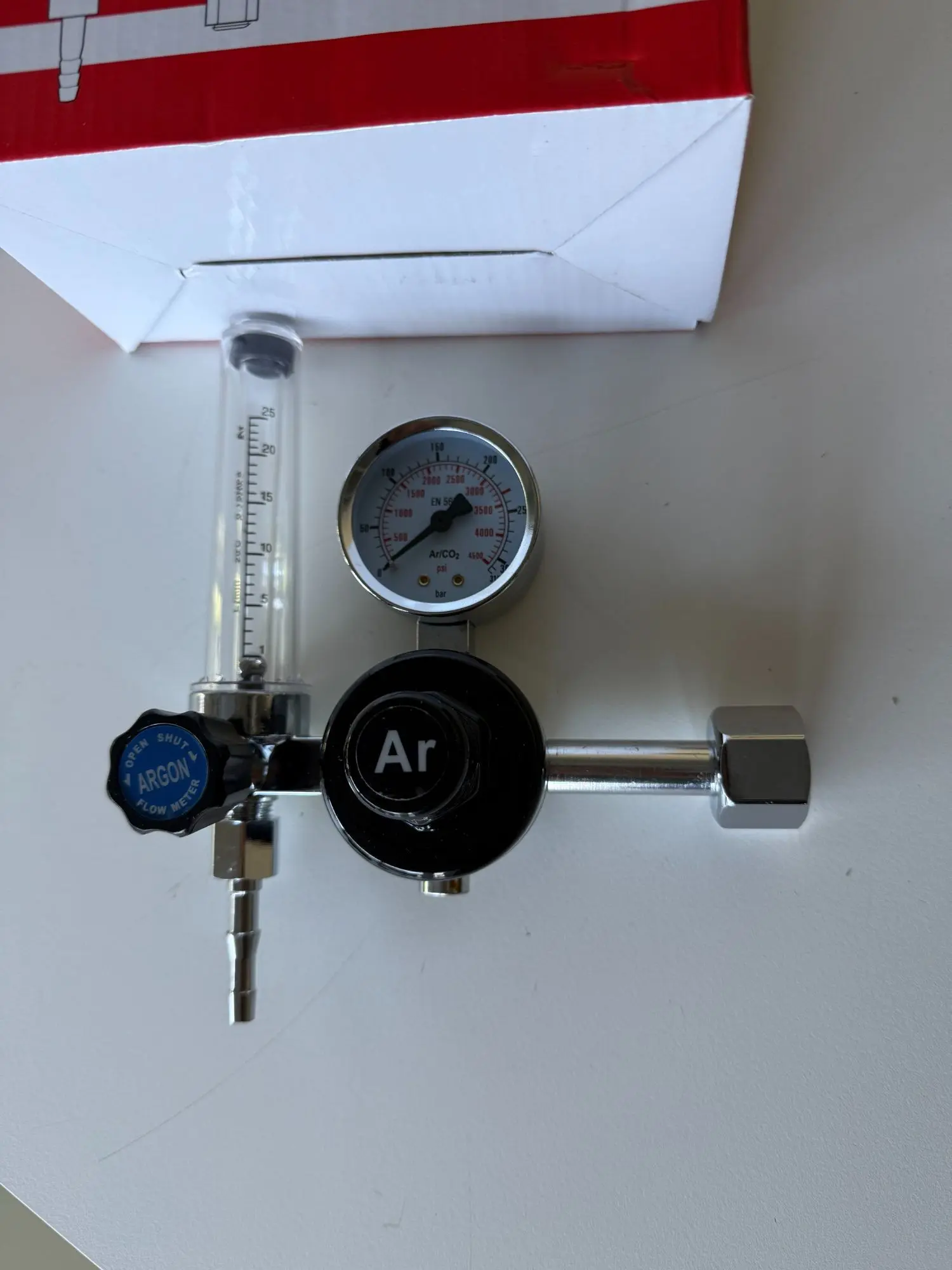 Schweißgerät-Druckminderer Argon / Mischgas, mit Flaschendruckmanometer und Flow Meter für die Durchflussmenge
