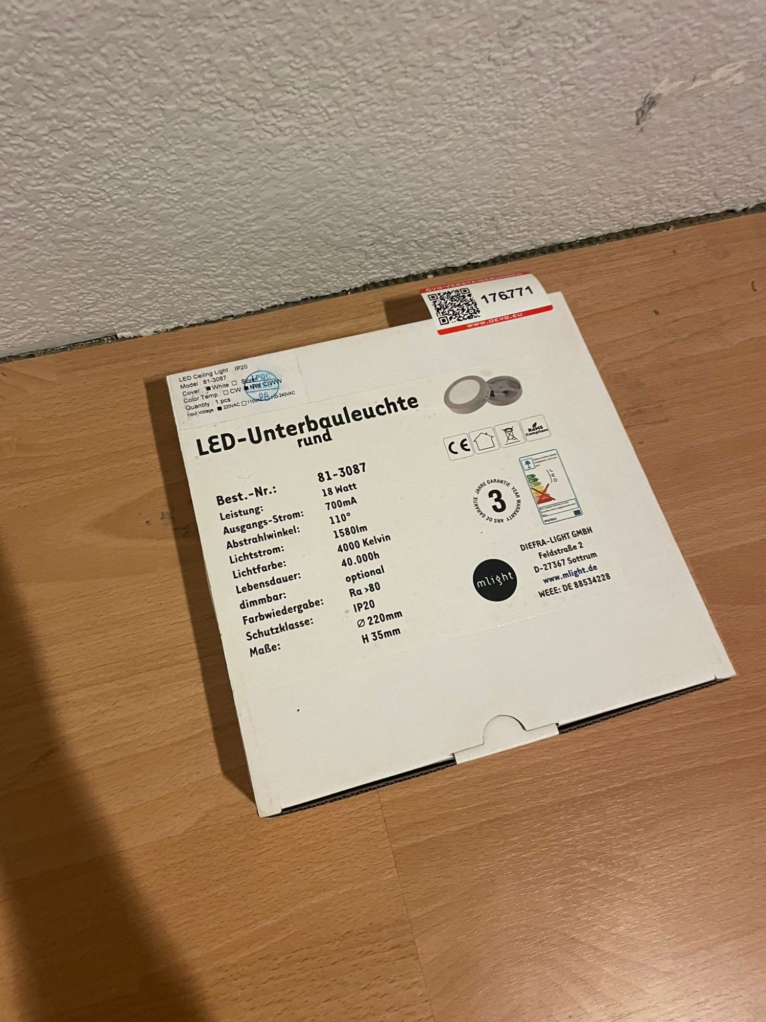 LED Unterbauleuchte original verpackt 18W (1580 lm) 4000K (weiß) 40.000 h. Leuchte als Deckenleuchte auch ausschwenkbar. 40.000 Betriebsstunden. Abmessungen: 220x35 mm
