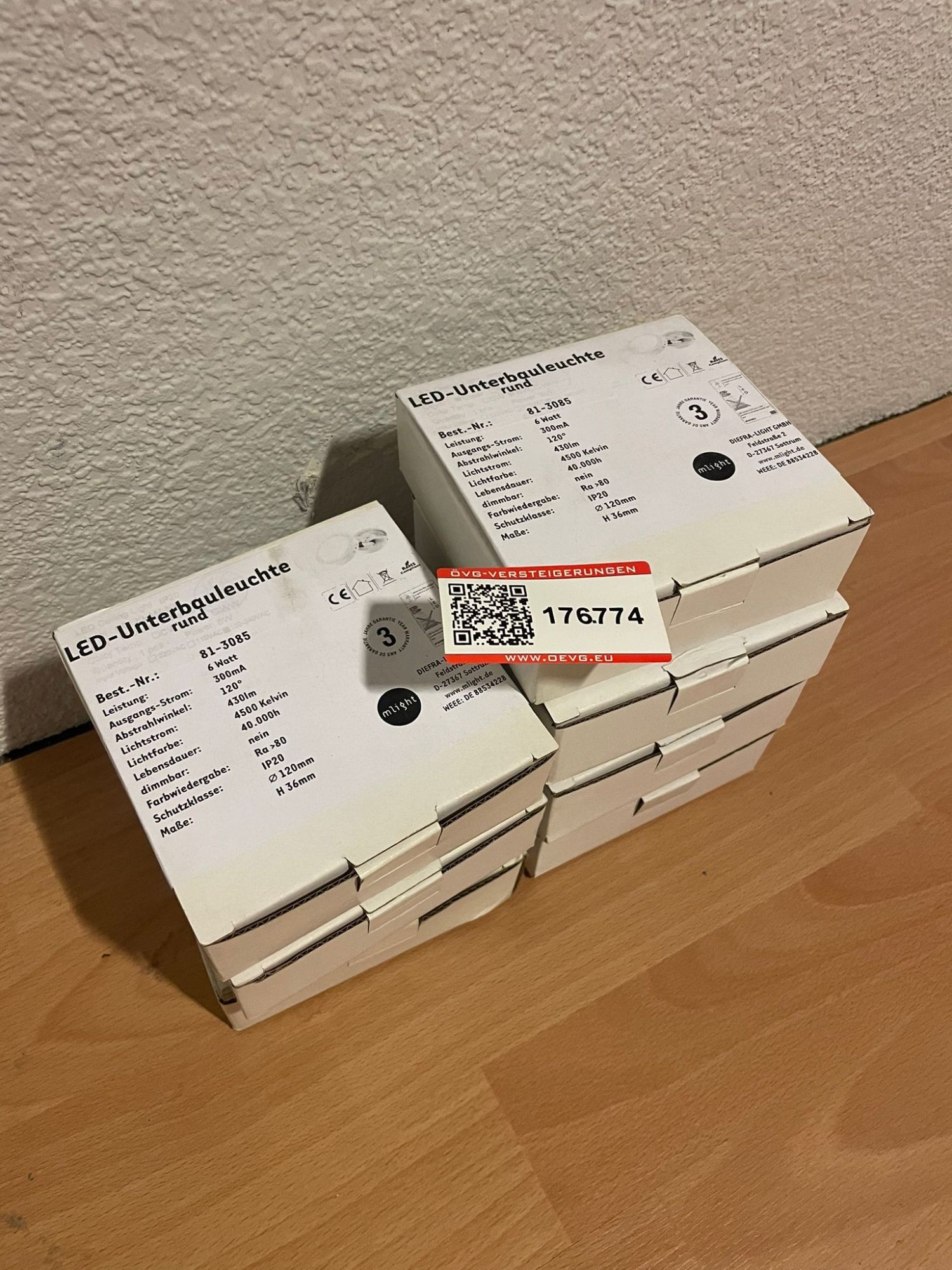 176.774: 7 Stk. LED-Unterbau-/Deckenleuchte rund 6W 120mm weiß (M-Light)