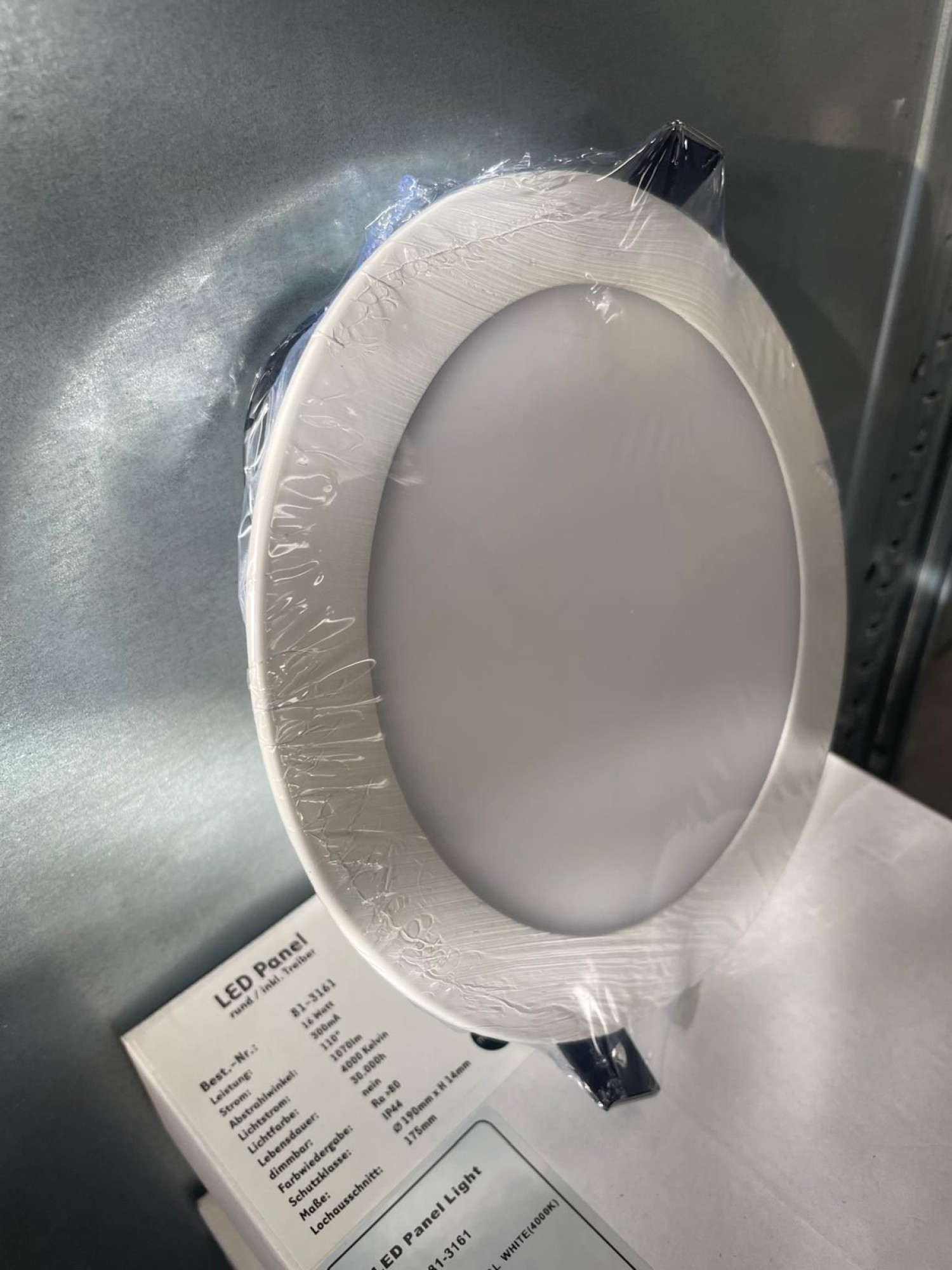 LED Einbauleuchte/Downlight inklusive Treiber 16 W (1070 lm) 4000 K (weißes Licht) und IP44 Schutz (für Feuchträume geeignet). Abmessungen 194 x 14 mm (Lochausschnitt: 175 mm).