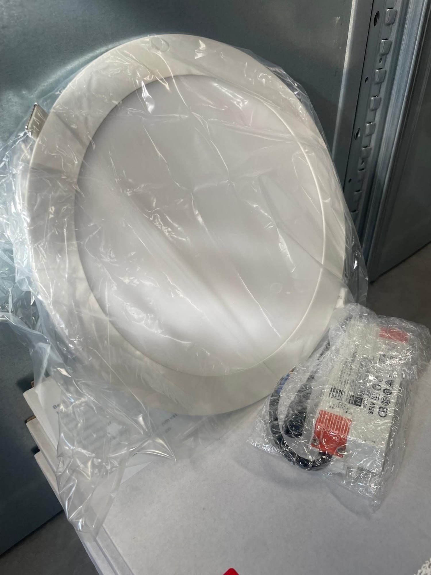 LED Ein­bau­leuch­te/Down­light in­klu­si­ve Trei­ber 26 W (2020 lm) 4000 K (wei­ßes Licht) und IP44 Schutz (für Feucht­räu­me ge­eig­net). Ab­mes­sun­gen 240 x 14 mm (Loch­aus­schnitt: 175 mm).