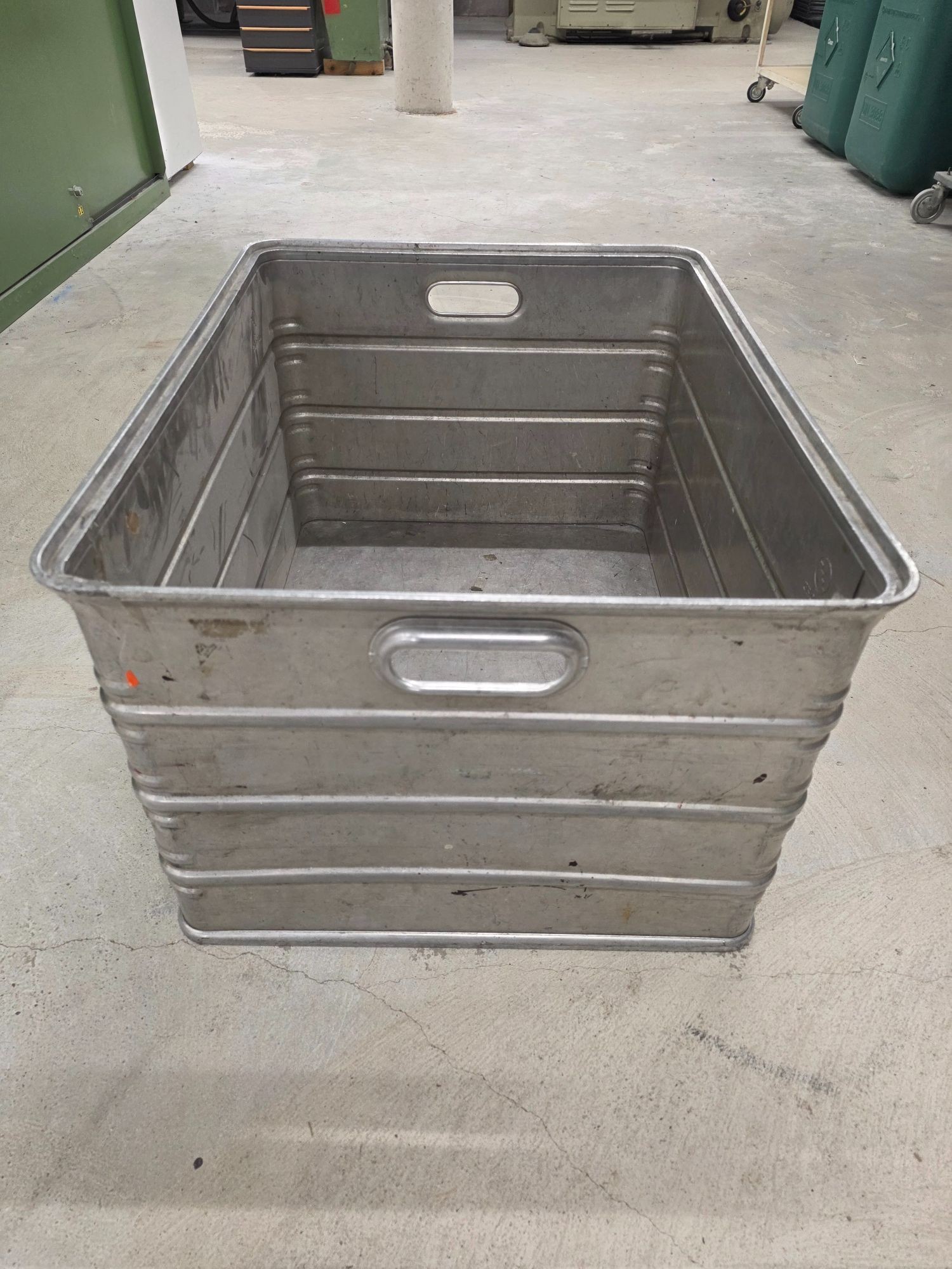 Alukiste zum Lagern und Stapeln. Länge 75,5 cm, Breite 57,5 cm, Höhe 42,5 cm