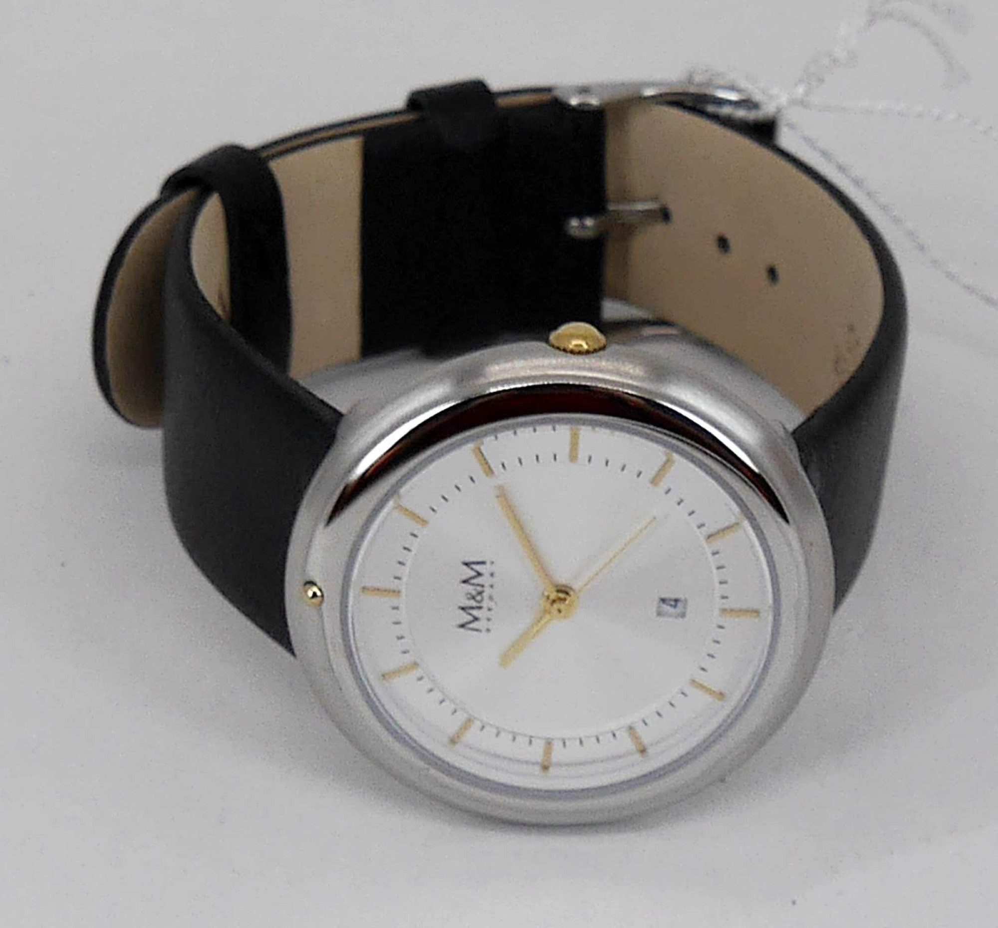 Neu OVP M11878-472 M&M (M&M), qua­dra­ti­sches Zif­fer­blatt, wei­ßes Le­der­arm­band und ein wei­ßes Zif­fer­blatt hat. Die Uhr ist für Da­men ge­dacht, hat ein Arm­band aus wei­ßem Le­der und ist bis zu 3 ATM (30 Me­ter) was­ser­dicht, was sie für Spritz­was­ser schützt. Die Uhr ver­fügt über ein Quarz­werk und ei­ne Da­tums­an­zei­ge. Mar­ke: M&M Mo­dell­num­mer: M11906-762 Ziel­grup­pe: Da­men De­sign: Run­des Ge­häu­se 34 mm und sil­ber­nes Zif­fer­blatt. Gol­de­ne Kro­ne, Zei­ger und In­di­zes Arm­band: Schwar­zes Le­der Uhr­werk: Quarz­werk (bat­te­rie­be­trie­ben) Was­ser­dich­tig­keit: 3 ATM (ent­spricht 30 Me­tern), Funk­tio­nen: Da­tums­an­zei­ge Her­stel­lungs­land der Mar­ke: Deutsch­land