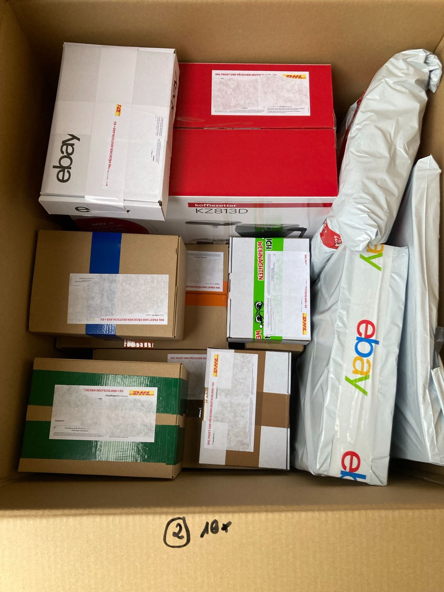 In einem ganz großen Karton befinden sich 10 Pakete mit unbekanntem Inhalt, die wegen Zahlungsunfähigkeit eines Kunden nicht zugestellt werden konnten. Es handelt sich um Neuware aus den Kategorien Elektronik, Haushalt, Multimedia, Spielzeug, Schmuck, Kosmetik, Sport und viele andere. UVP ca. 350 Euro.