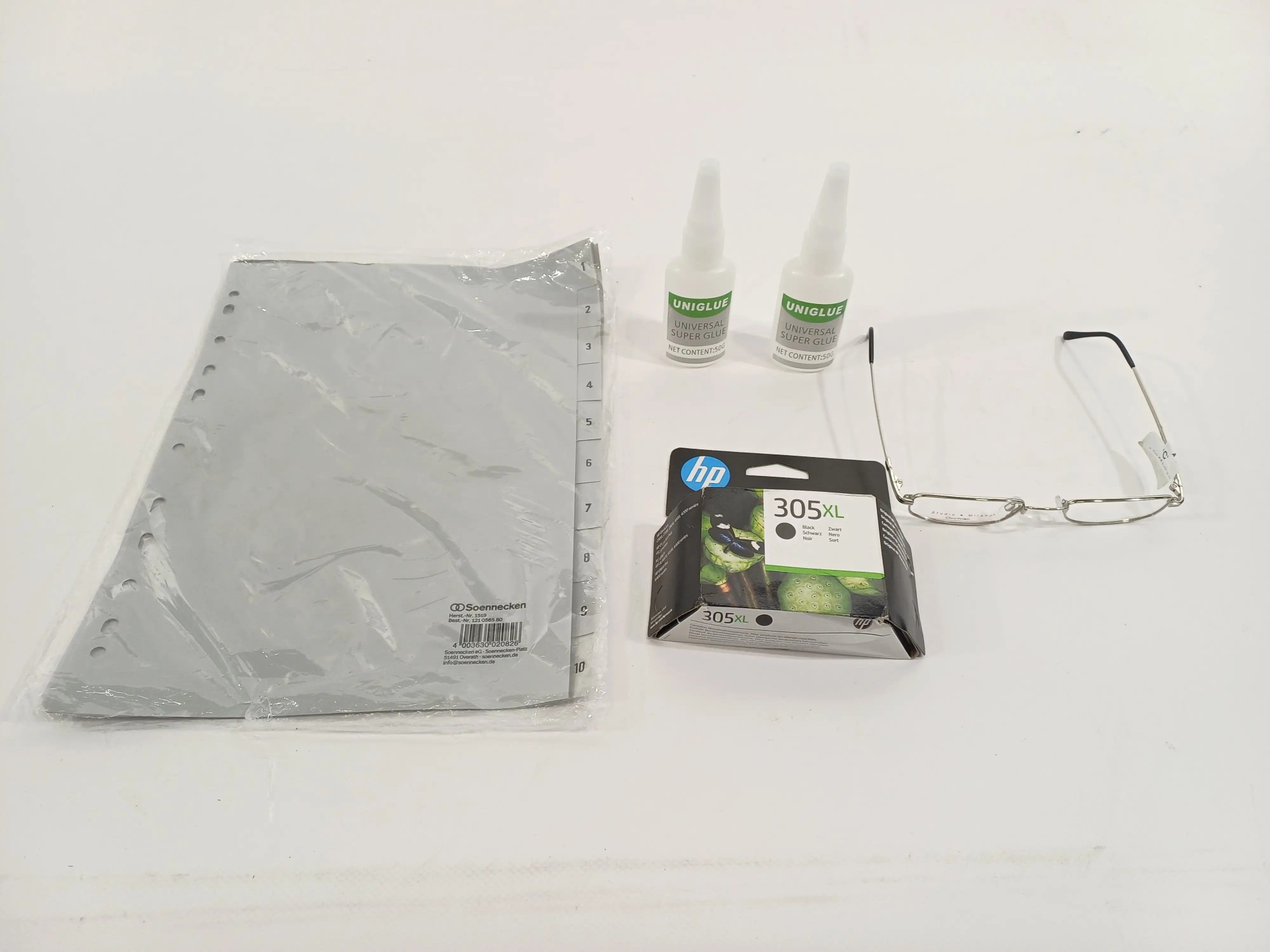 Druckerpatrone, Universalkleber, Brille