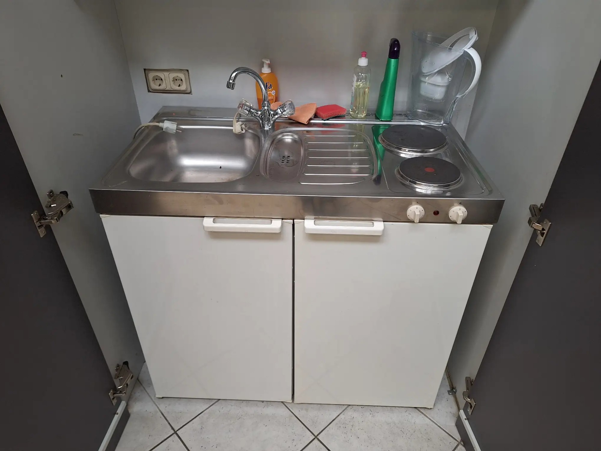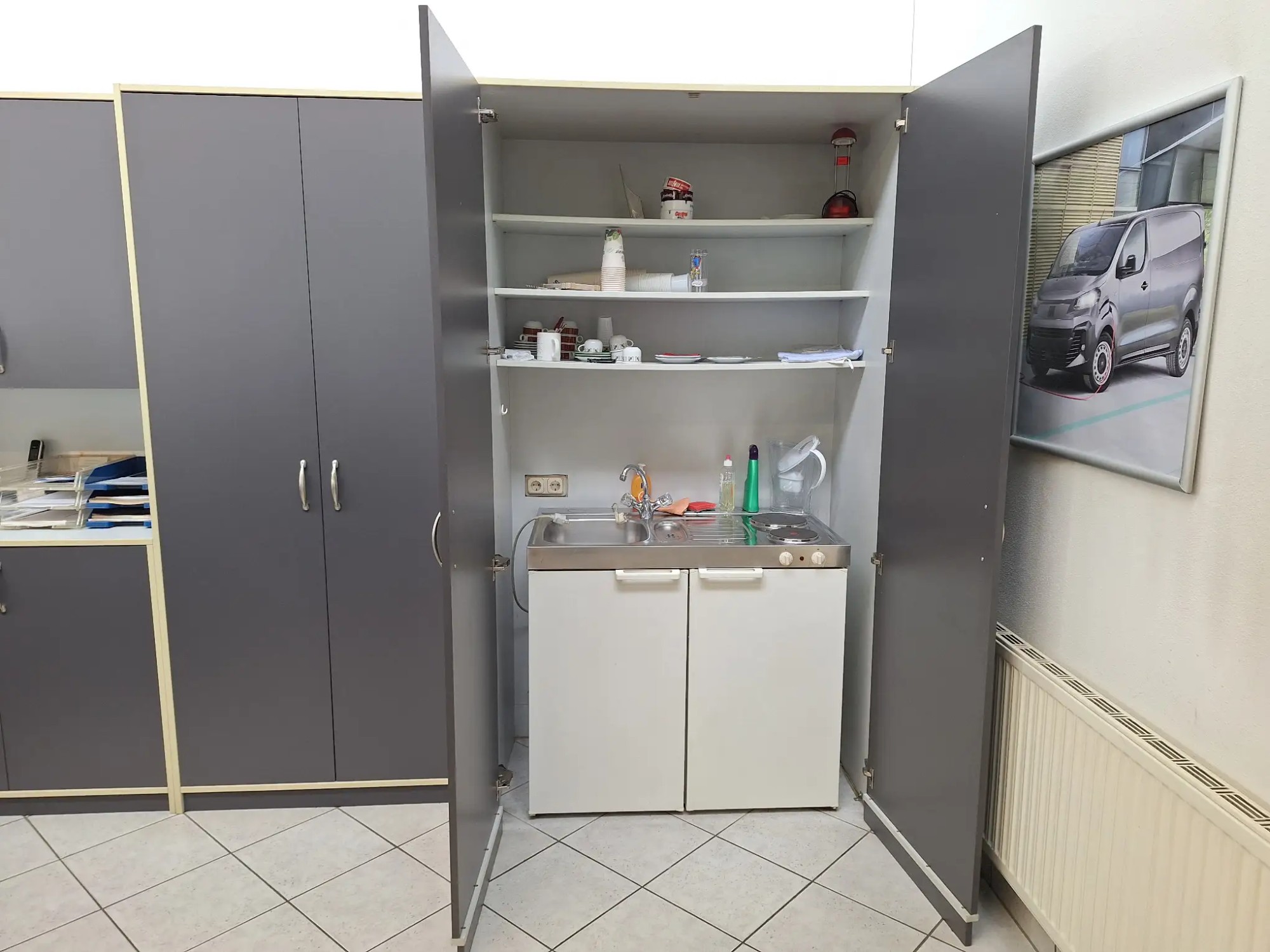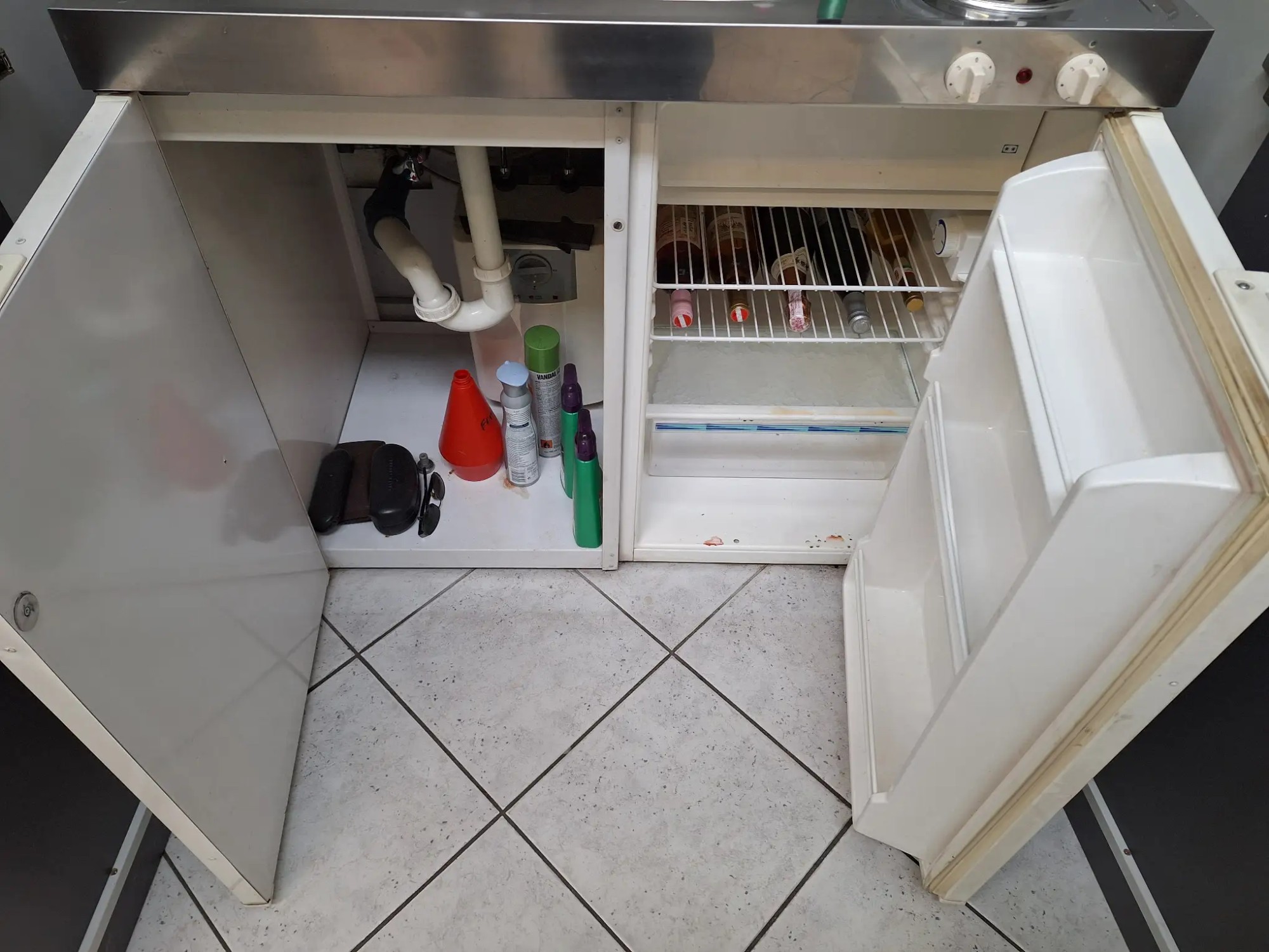 Inkl. Schrank und Inhalt, Küche (100x60x90 cm), Schrank (124x70x220 cm)
