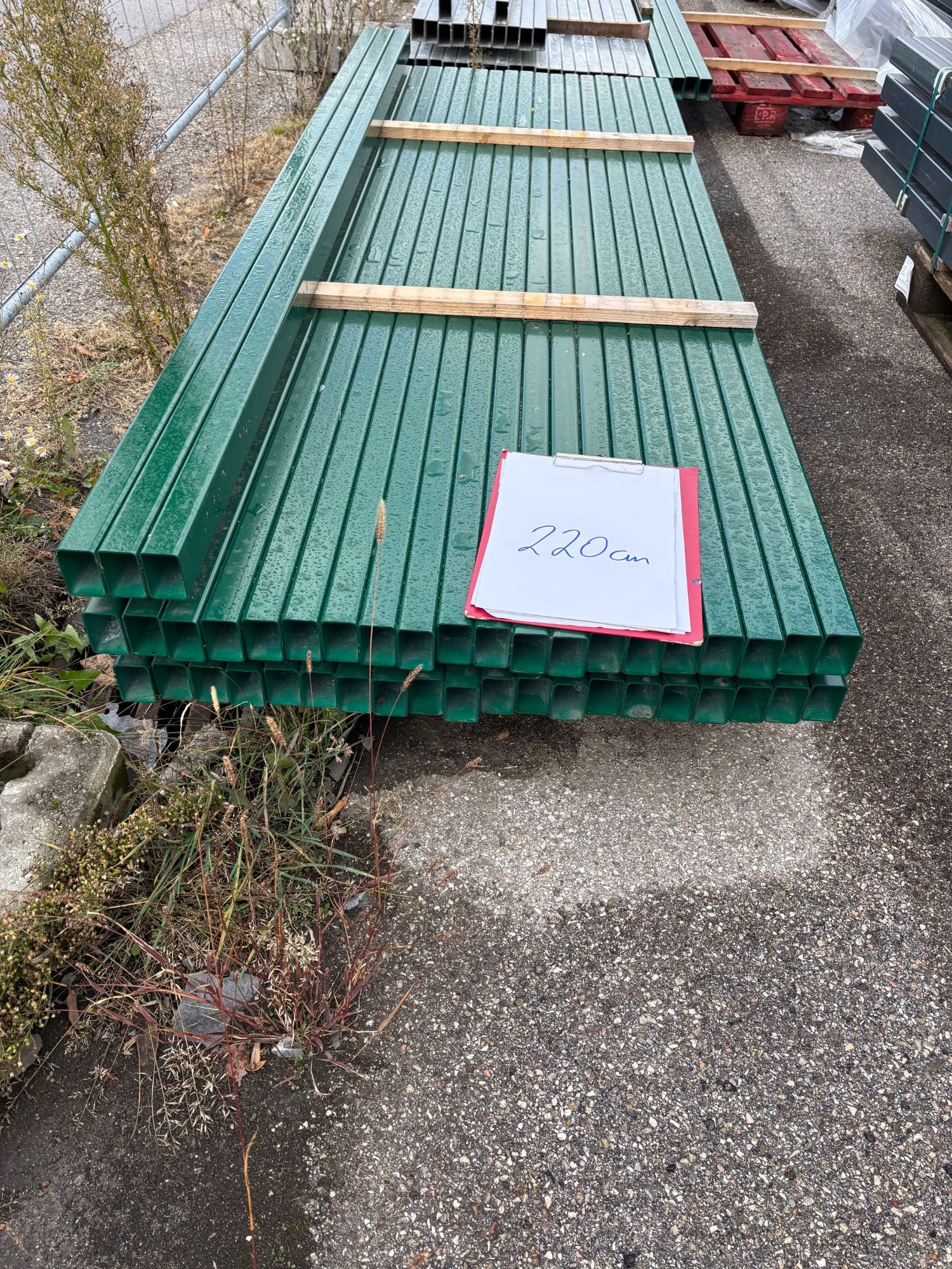 Steherlänge: 220 cm / Farbe: 6005 / Rechteckprofil: 60x40 mm / 43 Stück