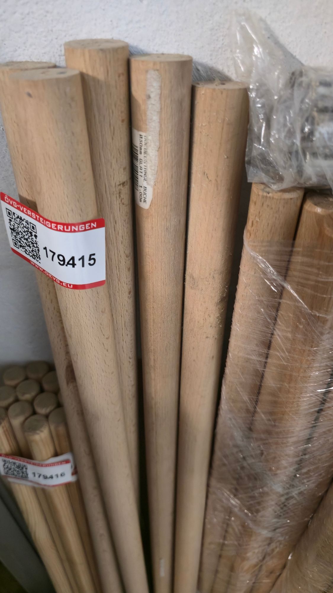179.415: 5 Stk. 30mm Durchmesser, Länge 1m, Buche roh