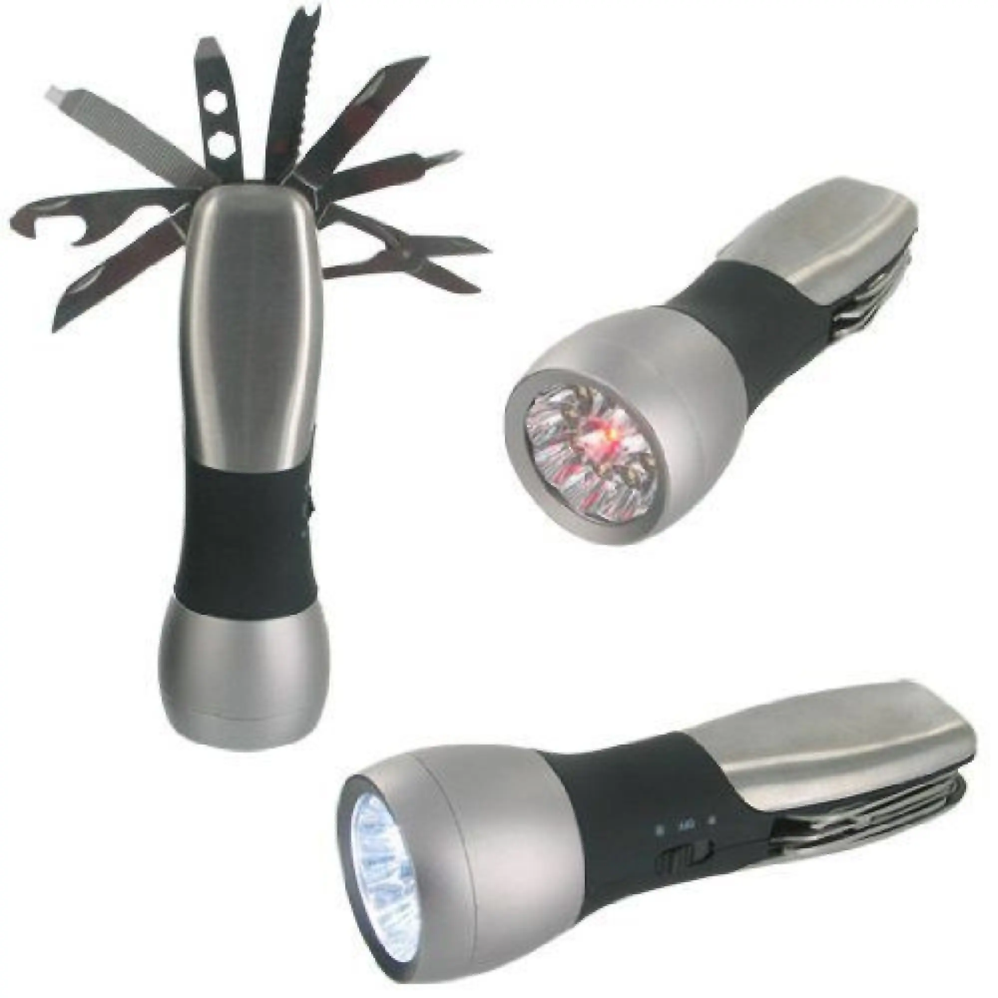 !NEUWARE! Neupreis 19 €, Diese multifunktionale LED-Lampe ist äußerst leicht, kompakt und einfach zu transportieren, weshalb sie sowohl von Männern als auch von Frauen täglich verwendet werden kann. Sie passt in jede Tasche und ist so gestaltet, dass sie angenehm zu tragen und zu halten ist. Die Lampe enthält 12 eingebaute Werkzeuge: einen kleinen, mittleren und großen Schraubendreher, einen verstellbaren Schraubenschlüssel, einen Flaschen- und Dosenöffner, eine Feile, ein Messer, eine Säge, eine Schere, einen Haken und ein Messer zum Reinigen von Fischen. Farbe: Schwarz, Grau Maße: 13,7 x 4,5 x 3 cm Material: Edelstahl mit Kunststoffgriff Benötigt 3 AAA-Batterien (nicht im Lieferumfang enthalten)