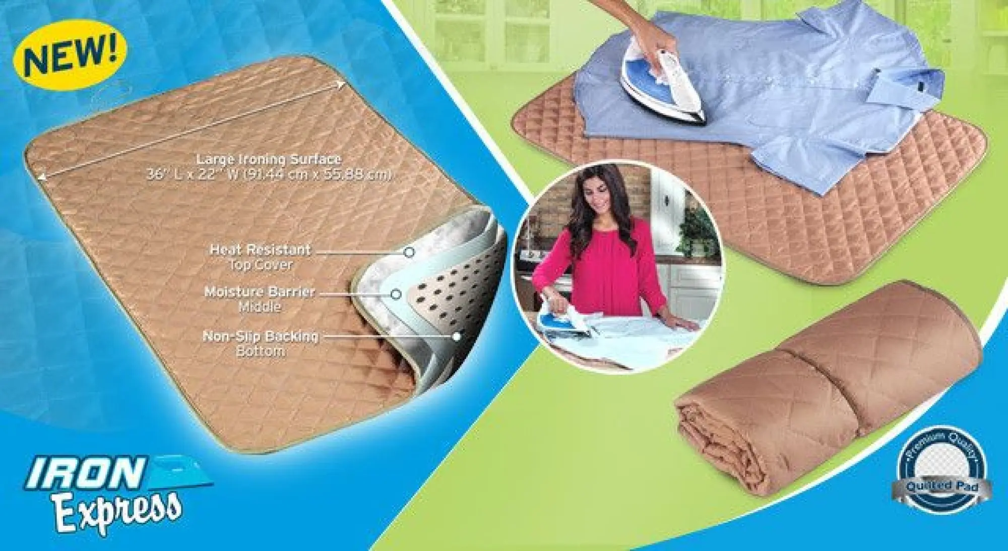 !NEUWARE! Neupreis: 19 €, Die Unterlage besteht aus 3 Schichten: Die obere Schicht ist hitzebeständig, die mittlere Schicht ist wasserdicht und die untere Schicht verhindert ein Verrutschen. Flexibel, leicht und einfach zu verstauen. Farbe: Beige Maße: 88 x 54 cm Material: Baumwolle, Vinyl, Polyester