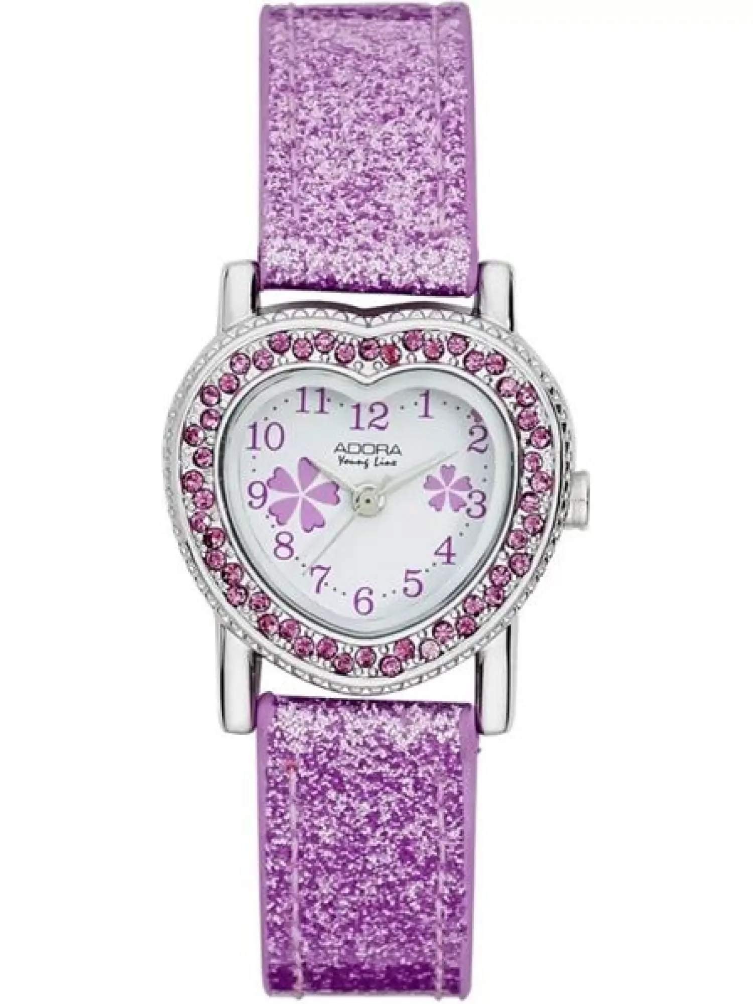 !NEUWARE! Neupreis: 32,52 €, Kinderuhr Adora Youngline mit Zirkonia in Lila. Die glitzernde Uhr in Herzform kommt an einem Armband aus Kunstleder mit rosa Riemen. Das kleine Gehäuse und das bequeme, verstellbare, gepolsterte Armband eignen sich für Kinder im Alter von 5–10 Jahren und halten den täglichen Herausforderungen stand. Sie verfügt über ein hochwertiges Quarzuhrwerk, eine langlebige, austauschbare japanische Batterie und eine spritzwassergeschützte Konstruktion.