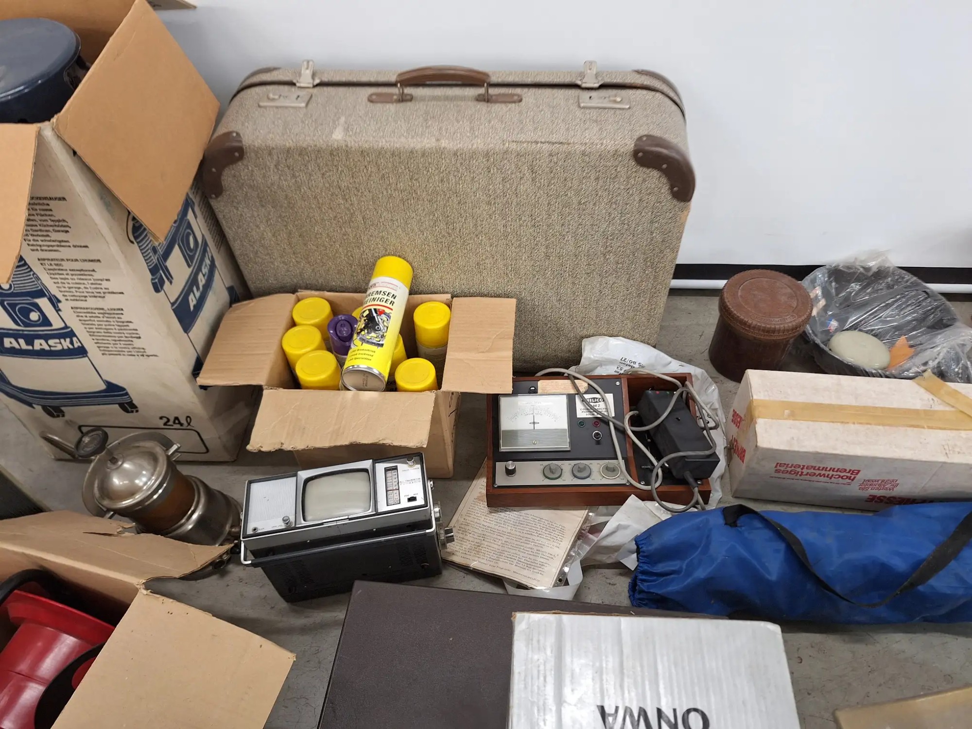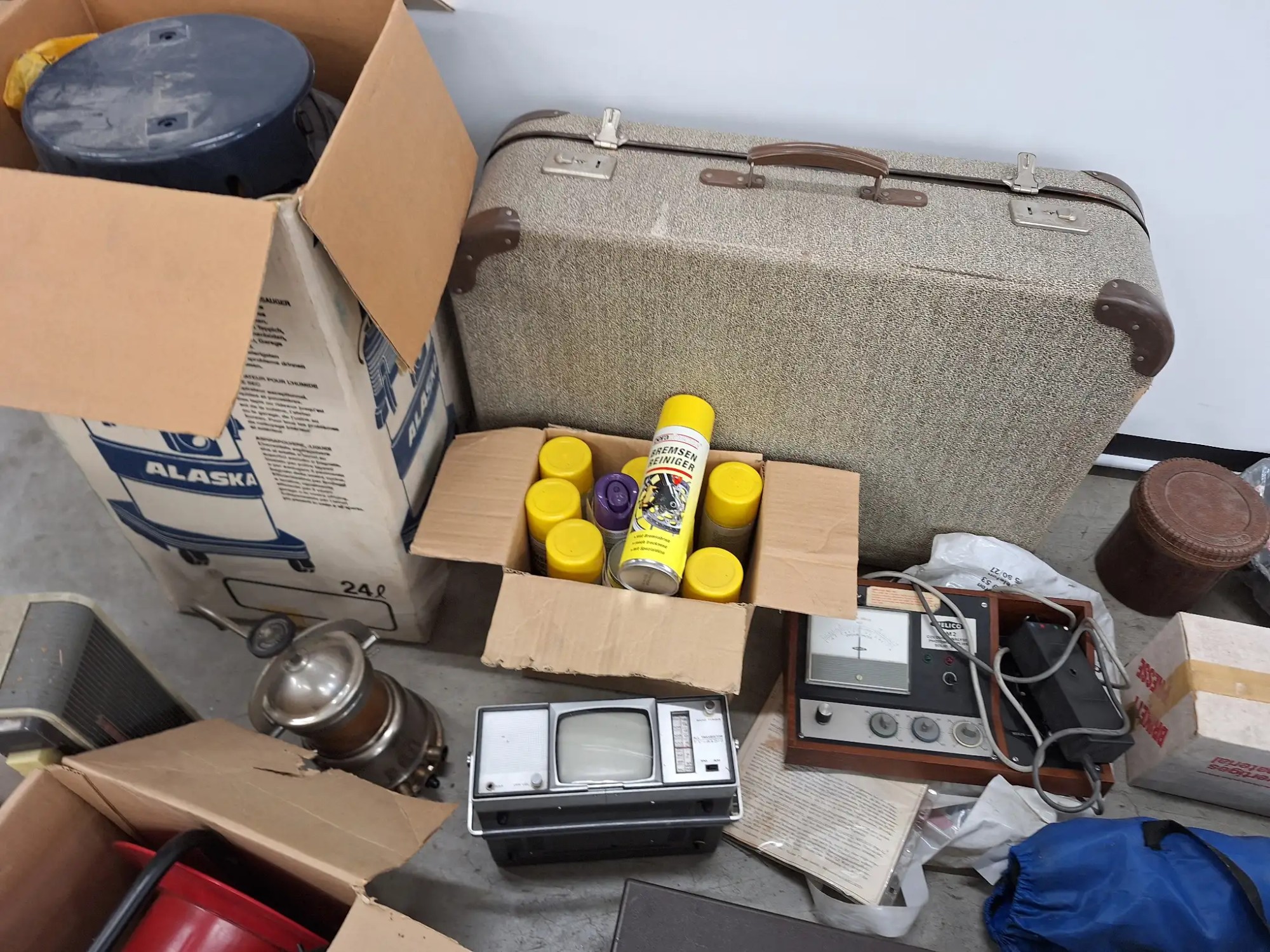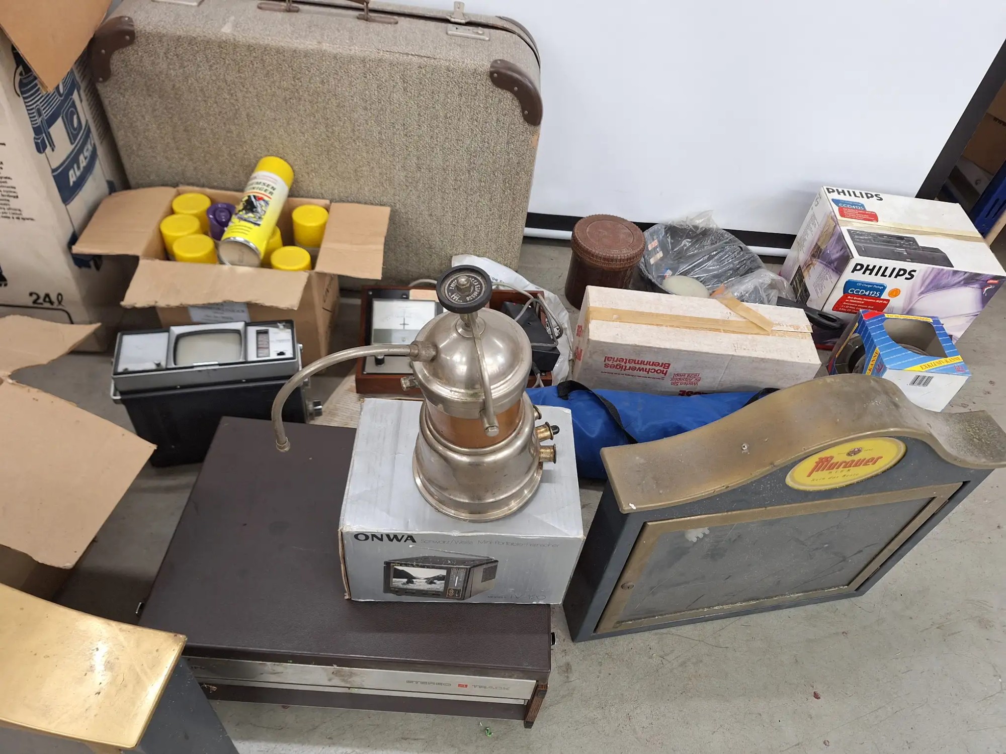 Koffer, diverse Nostalgische Geräte, Hocker, ohne Palette