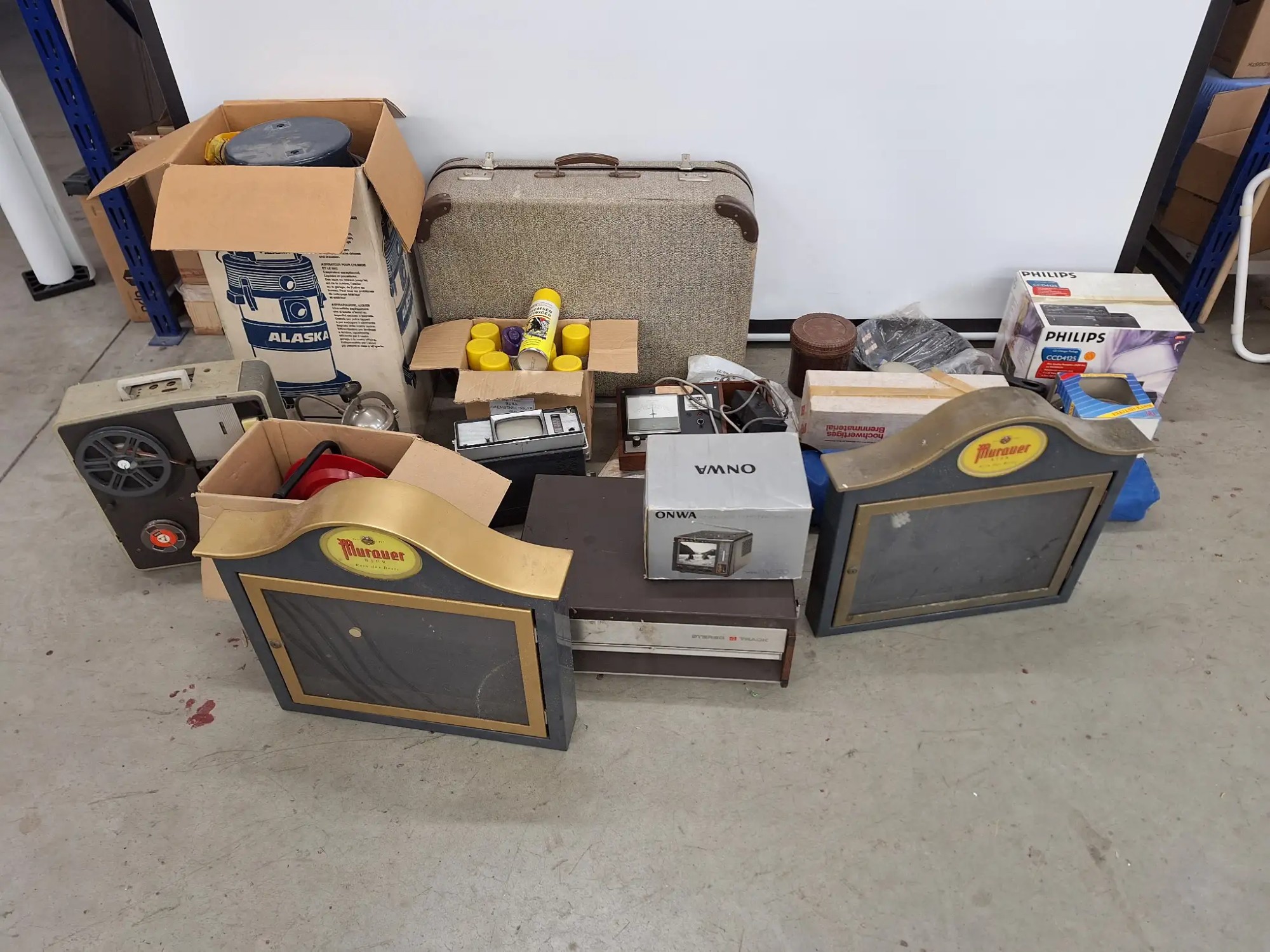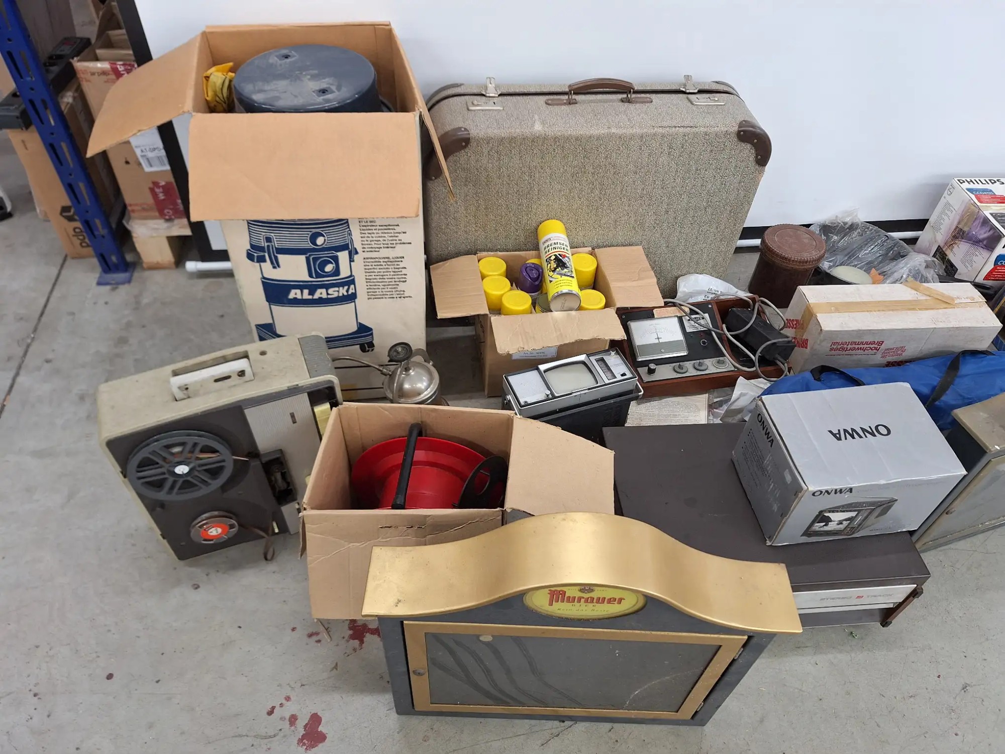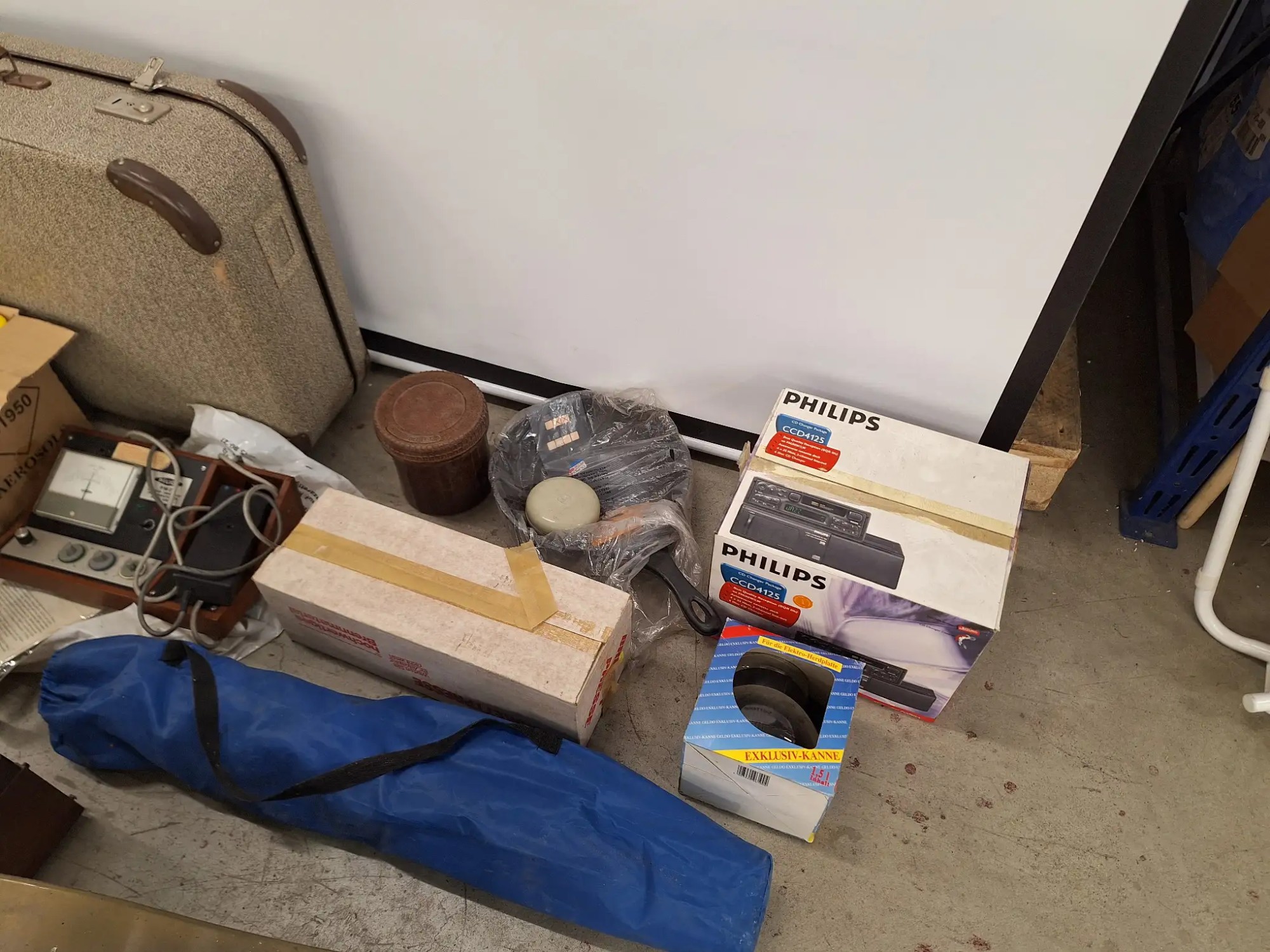 Koffer, diverse Nostalgische Geräte, Hocker, ohne Palette