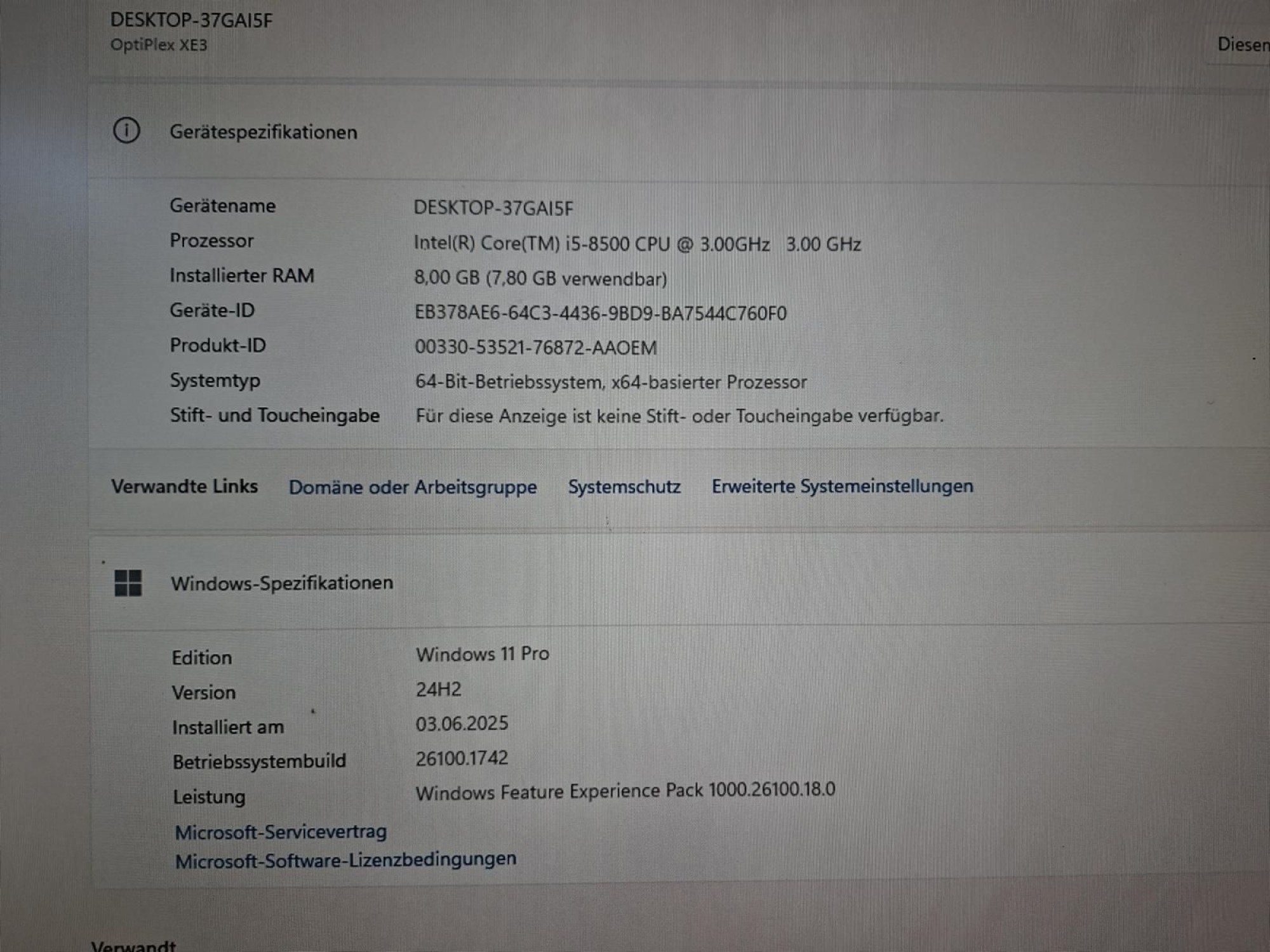 In­tel Co­re i5 8500 3.0 GHz, 8 GB RAM, 250 GB SSD, 1 TB HDD, In­tel UHD Gra­phics, Blue­tooth, WLAN, Win­dows 11 neu in­stal­liert, div. An­schlüs­se, LAN, usw. oh­ne wei­te­res Zu­be­hör, De­tails sie­he Bil­der, ge­braucht, Ver­sand mög­lich, je­doch nur ge­gen Kos­ten bzw. Haf­tungs­über­nah­me durch den Käu­fer für even­tu­el­le Schä­den, die beim Trans­port pas­sie­ren könn­ten. Die Be­zah­lung muss in­ner­halb von 7 Ta­gen ab Zu­schlag er­fol­gen, soll­te das nicht mög­lich sein, bie­ten Sie bit­te nicht mit. Ver­sand als ex­tra Pa­ket - kann nicht mit an­de­ren Ar­ti­keln kom­bi­niert wer­den.
