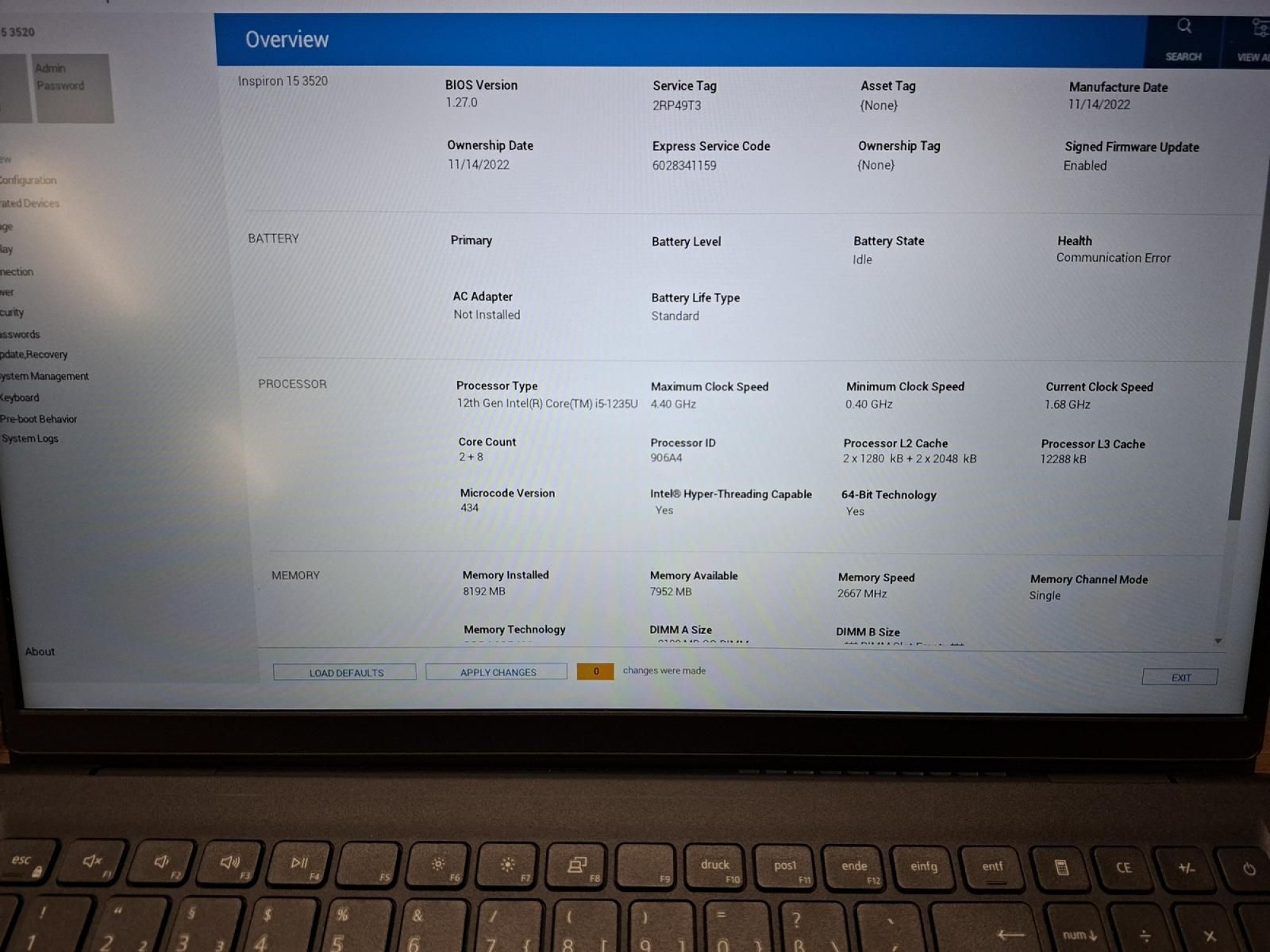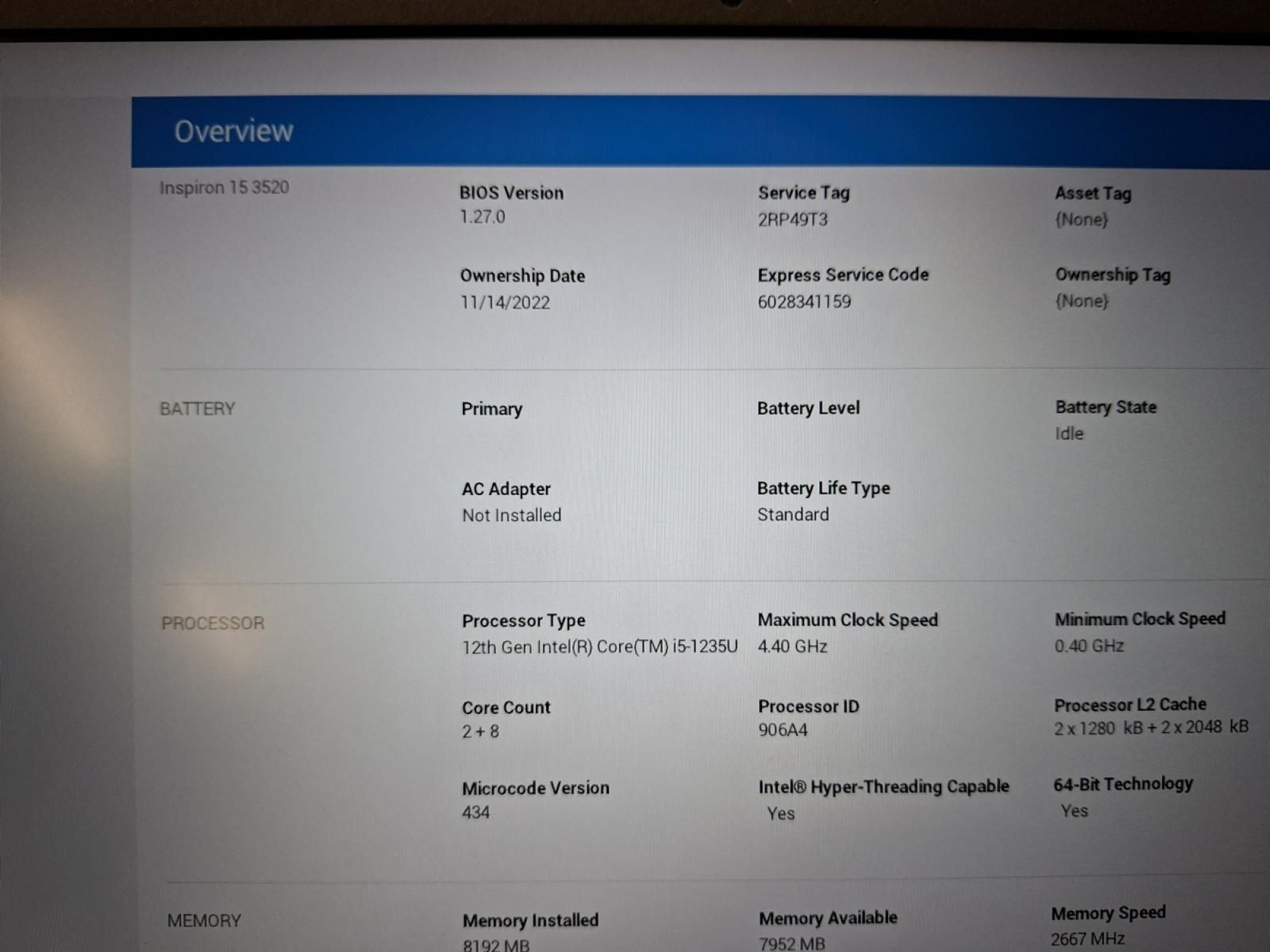 157.636: 1 Stk. Dell In­spi­ri­on 15 3520 Co­re i5-1235U 8GB 256GB