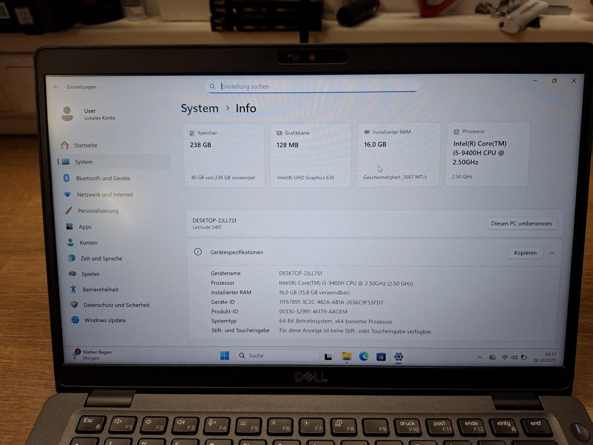 Intel Core i5-9400H 2.5 GHz, 14-Zoll-Display, 16 GB RAM, 256 GB SSD, Audio, Bluetooth, Intel UHD Graphics 630, WLAN, Anschlüsse siehe Bilder, Akku funktioniert - Laufzeit wurde nicht getestet, gebraucht mit Gebrauchsspuren, Windows 11 neu installiert, inkl. Netzteil, ohne weiteres Zubehör, Details siehe Bilder, gebraucht, Versand möglich, jedoch nur gegen Kosten bzw. Haftungsübernahme durch den Käufer für eventuelle Schäden, die beim Transport passieren könnten. Die Bezahlung muss innerhalb von 7 Tagen ab Zuschlag erfolgen, sollte das nicht möglich sein, bieten Sie bitte nicht mit.