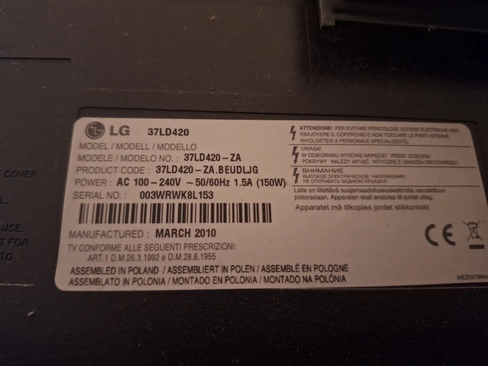 Inkl. Wand­hal­te­rung, Mo­dell 37L­D420-ZA, oh­ne Fern­be­die­nung, 94 cm Dia­go­na­le