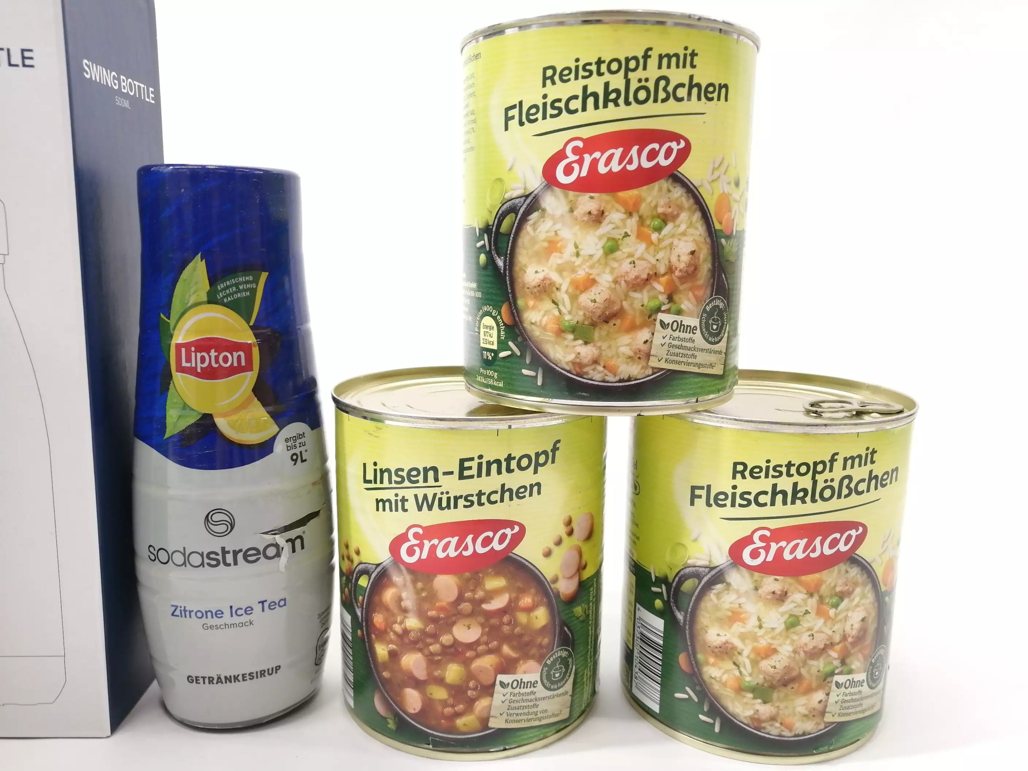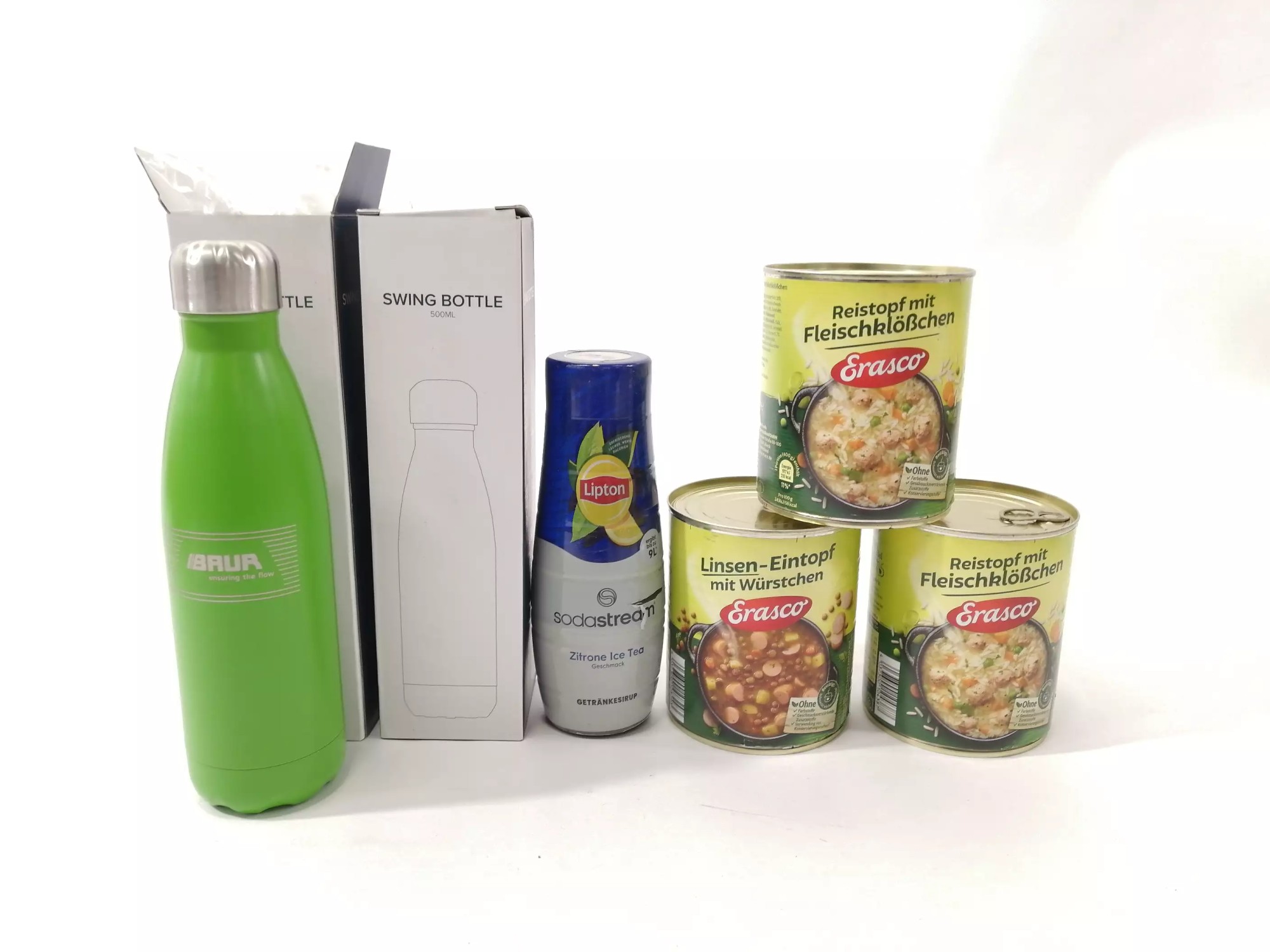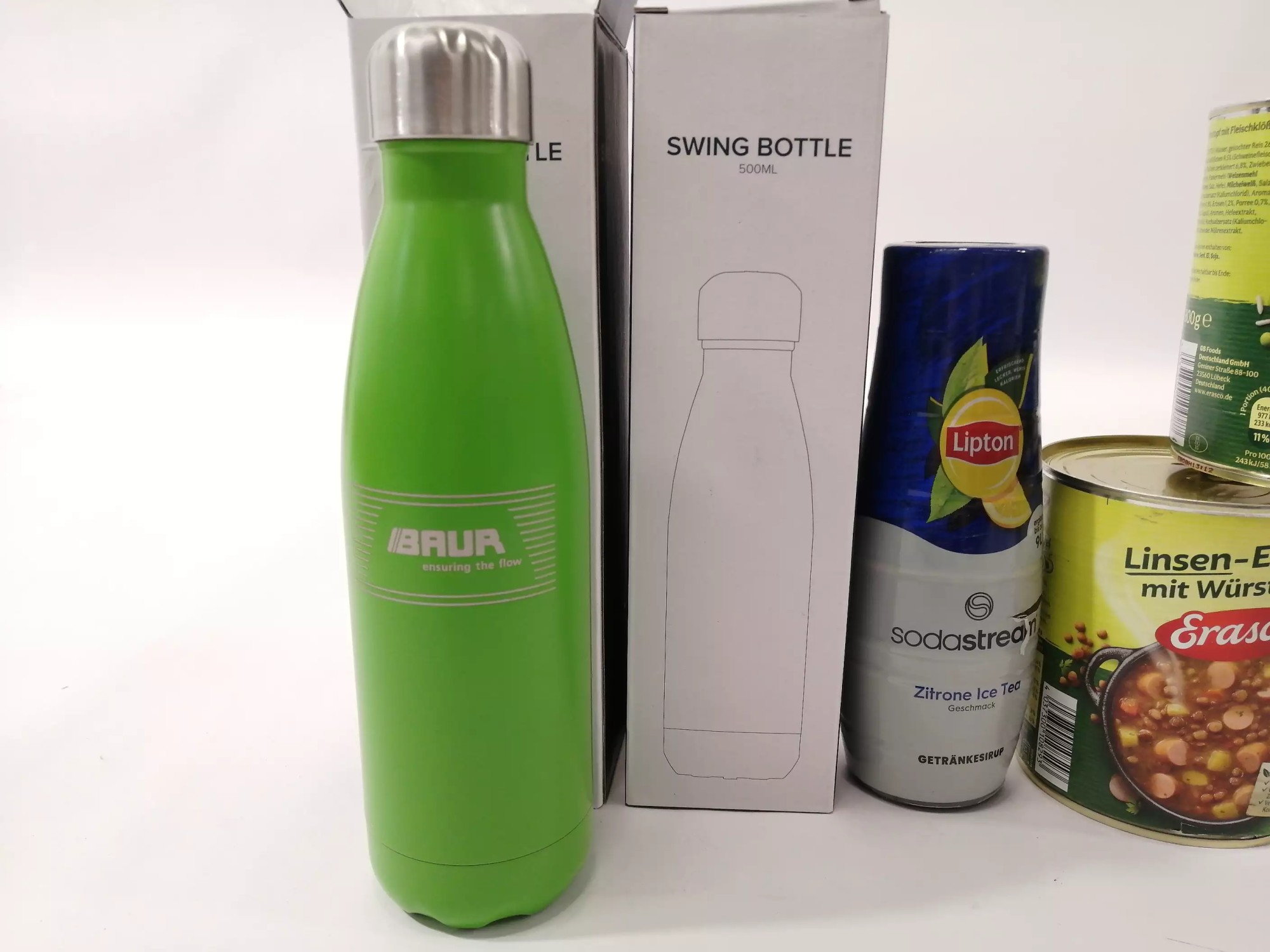 Le­bens­mit­tel MHD 2028, Si­rup So­da­St­ream MHD 2026, Ther­mof­la­schen je 500 ml
