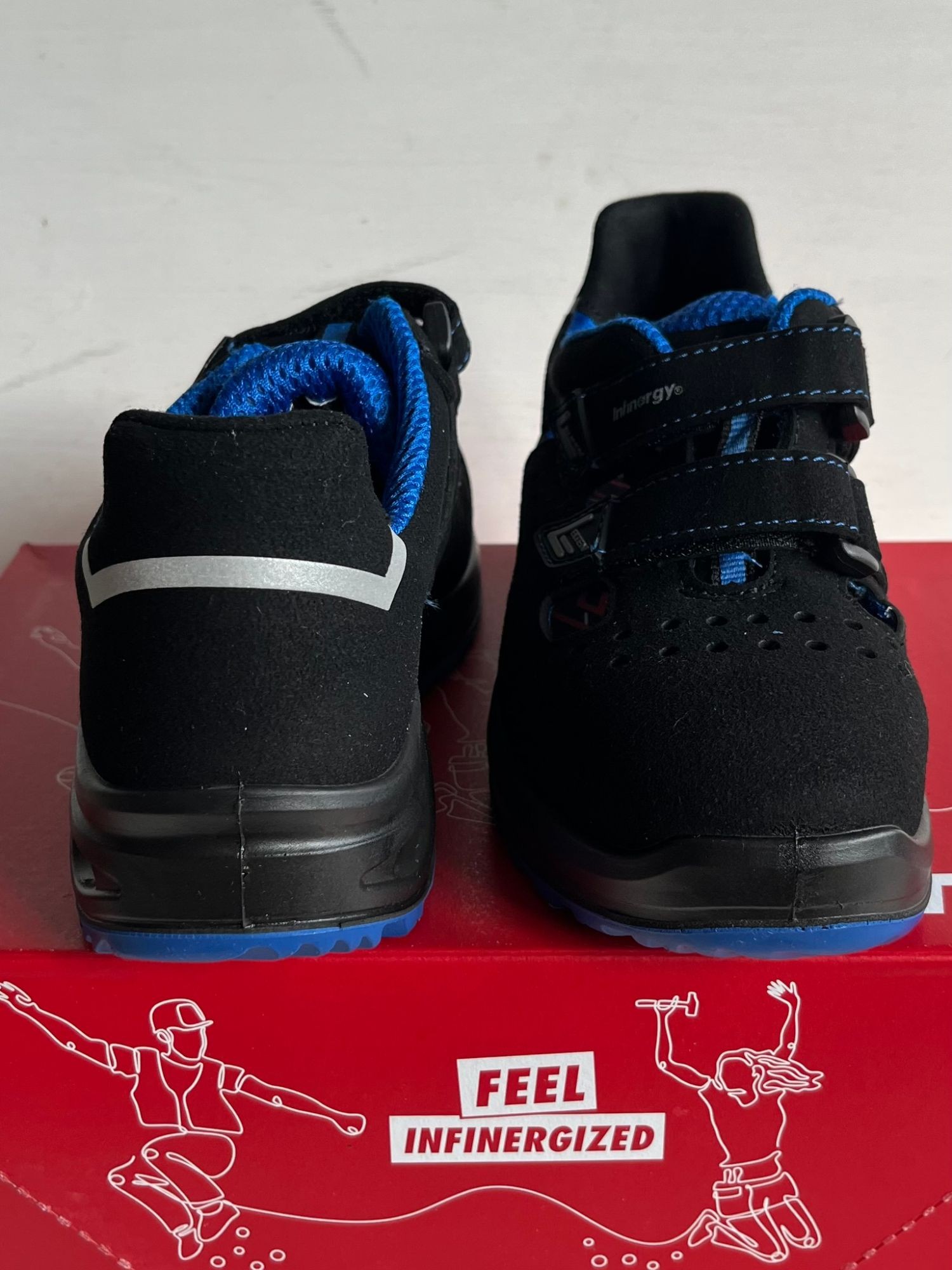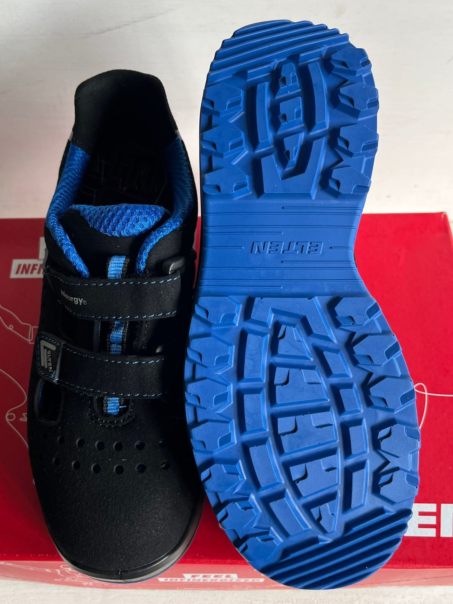 74301 Damensandale mit Dämpfungspower Volle Dämpfungspower voraus: Die lederfrei ausgestattete IMPULSE Lady XXTL blue Easy ESD S1P ist eine Sicherheitssandale aus der ELTEN WELLMAXX Serie und erfüllt speziell die Anforderungen von Arbeitnehmerinnen an Fußschutz, Komfort und modisches Aussehen. Ihre PU/PU Sohle WELLMAXX TRAINERS LADY hat besonders dämpfende Eigenschaften, da sie über einen Sohlenkern aus dem Hightech-Material Infinergy® von BASF verfügt. Die Energie, die die Trägerin beim Laufen aufwendet, wird so zur Hälfte wieder an sie zurückgegeben. Das schont die Gelenke und schützt vor frühzeitiger Ermüdung. Durch den Klettverschluss ist die Sandale einfach zu schließen und schnell zu öffnen. Ein Plus an Sicherheit gewährt der metallfreie Durchtrittschutz gemeinsam mit der Stahlkappe, sodass Gefahren von oben, unten und vorne erfolgreich abgewehrt werden. Ein Obermaterial aus Mikrofaser sowie ein atmungsaktives Textilfutter sorgen für zusätzlichen Tragekomfort.