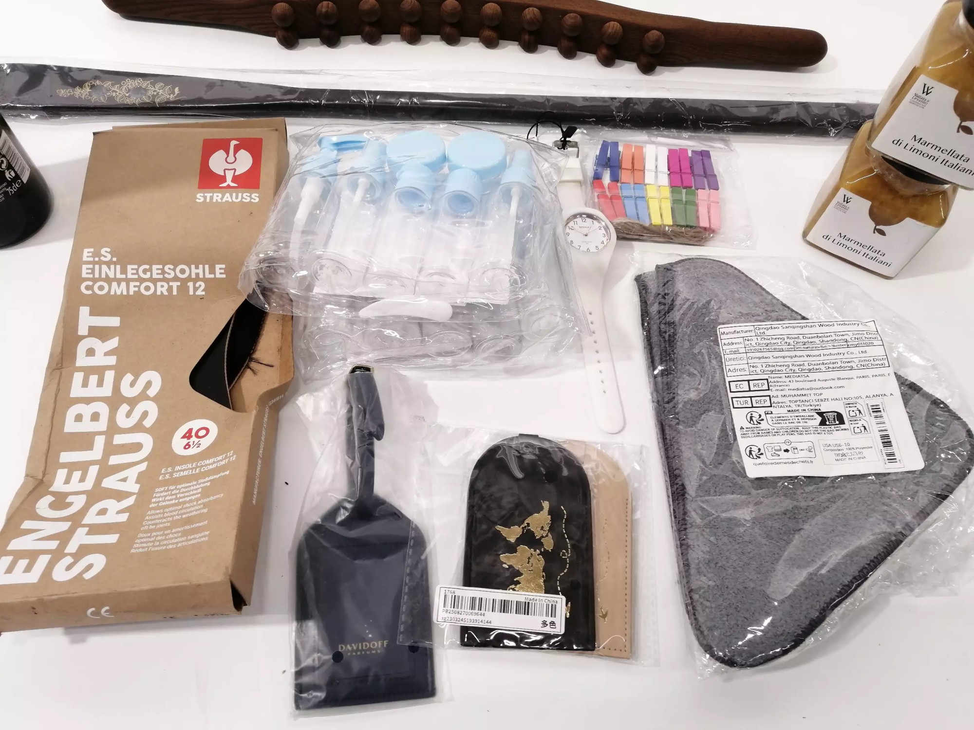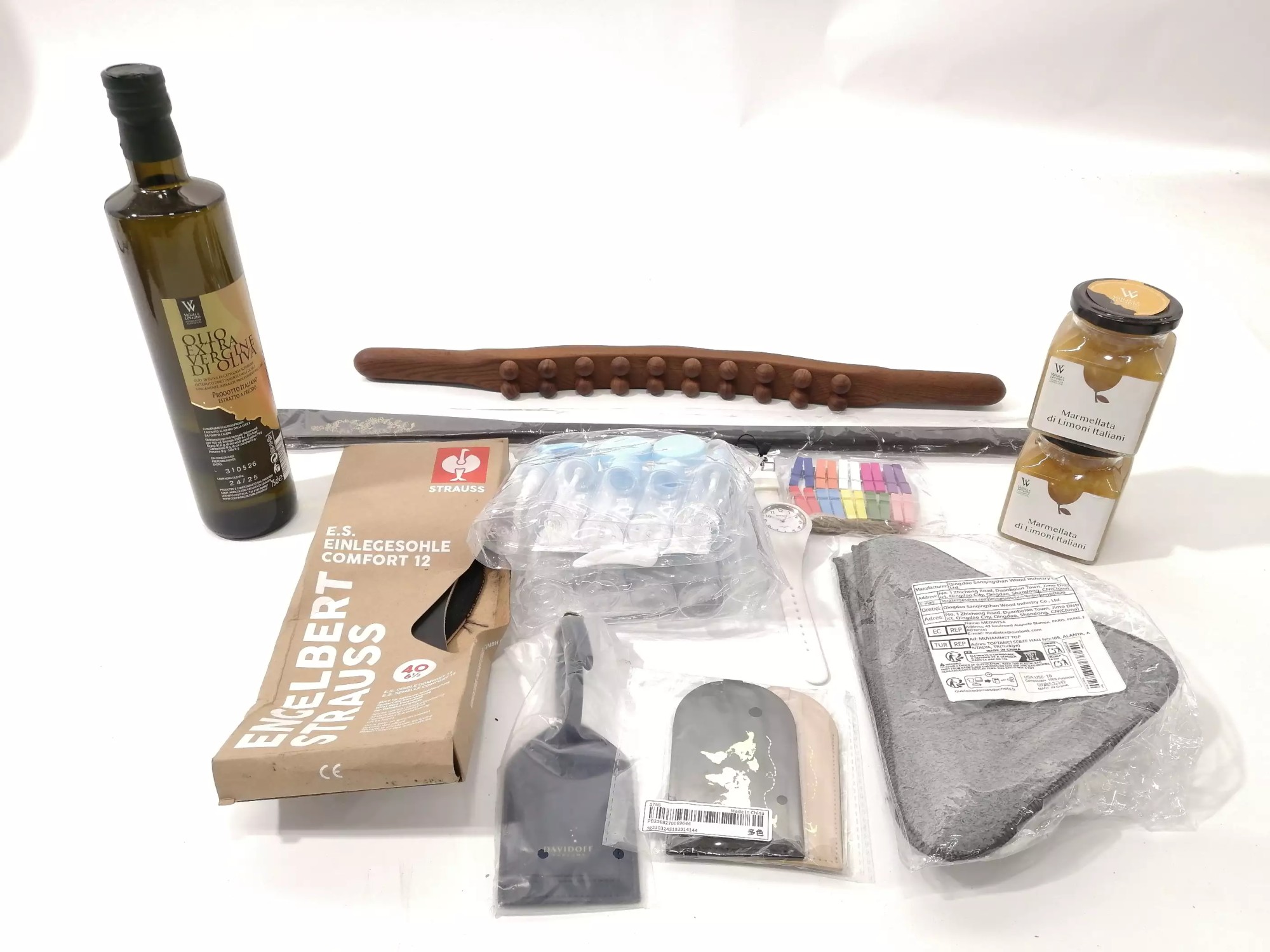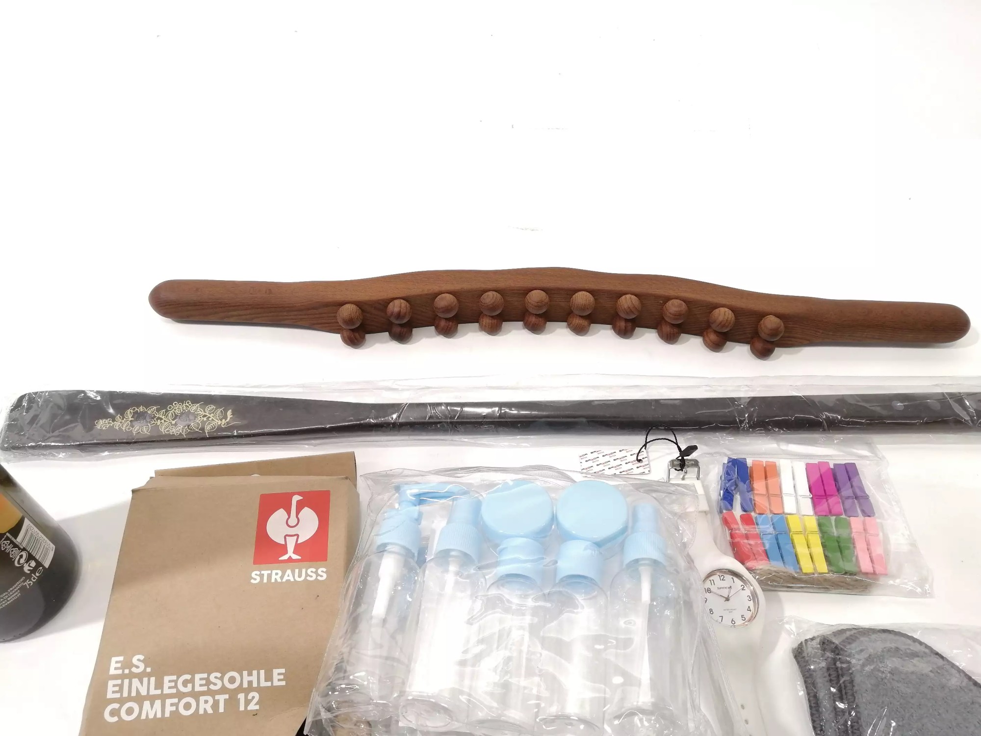 Lebensmittel MHD 2026, Einlegesohle Größe 40, Schuhlöffel, Massagegerät, Uhr