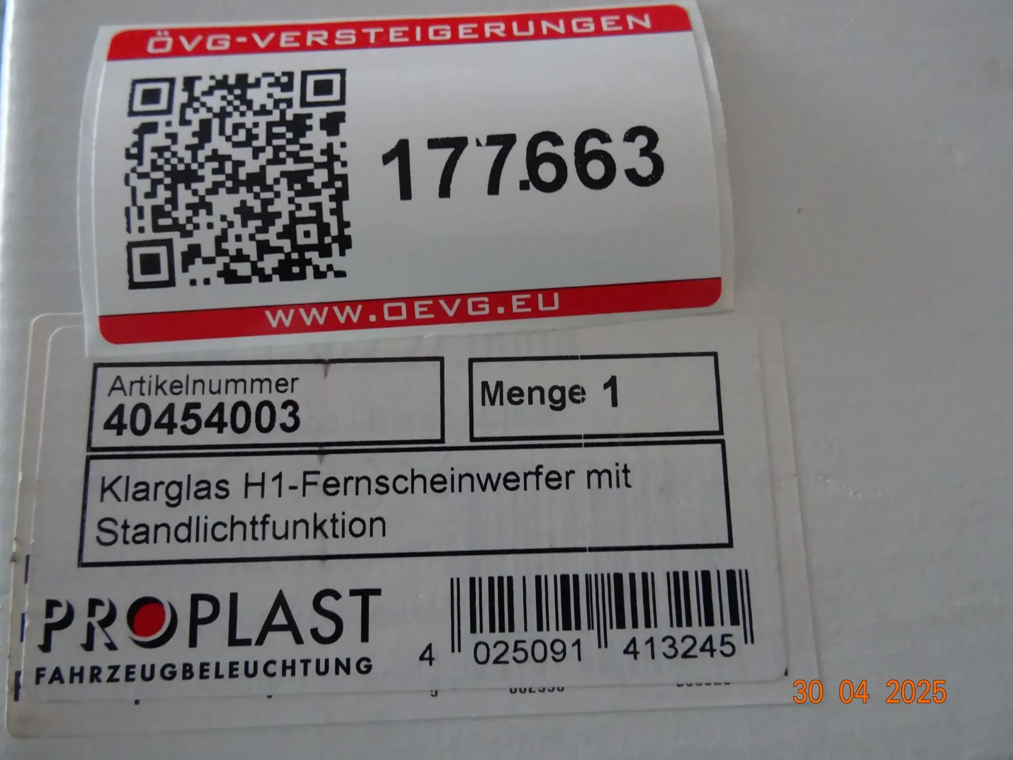 177.663: 1 Stk. Zusatzscheinwerfer H1 mit Begrenzungslicht (PROPLAST)