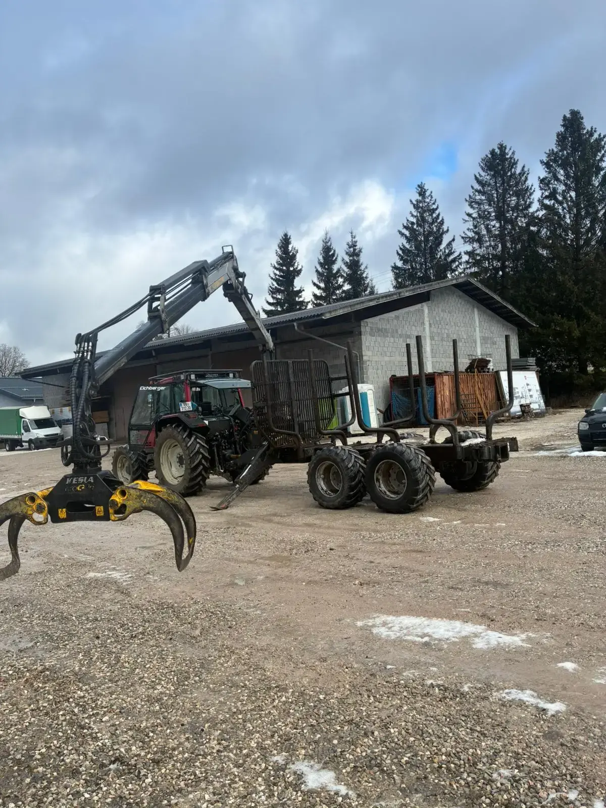 Kesla 12MDH mit 8,5m Forstkran, 22,5 Felgen Doppelte Weidwinkelzapfwelle Waltscheid, Danfoss Steuerung von der Kabine aus, Zange neuwertig, Bei Fahrantrieb vermutlich Reparaturbedürftig,