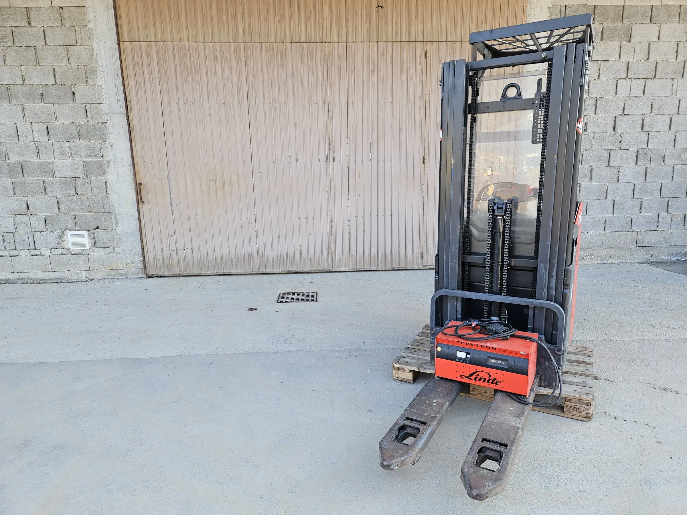 Typ: L12SP, Höhe: 220cm, laut fotos, inklusive ladegerät von Linde 24V-80A, vermutlich Reparaturbedürftig