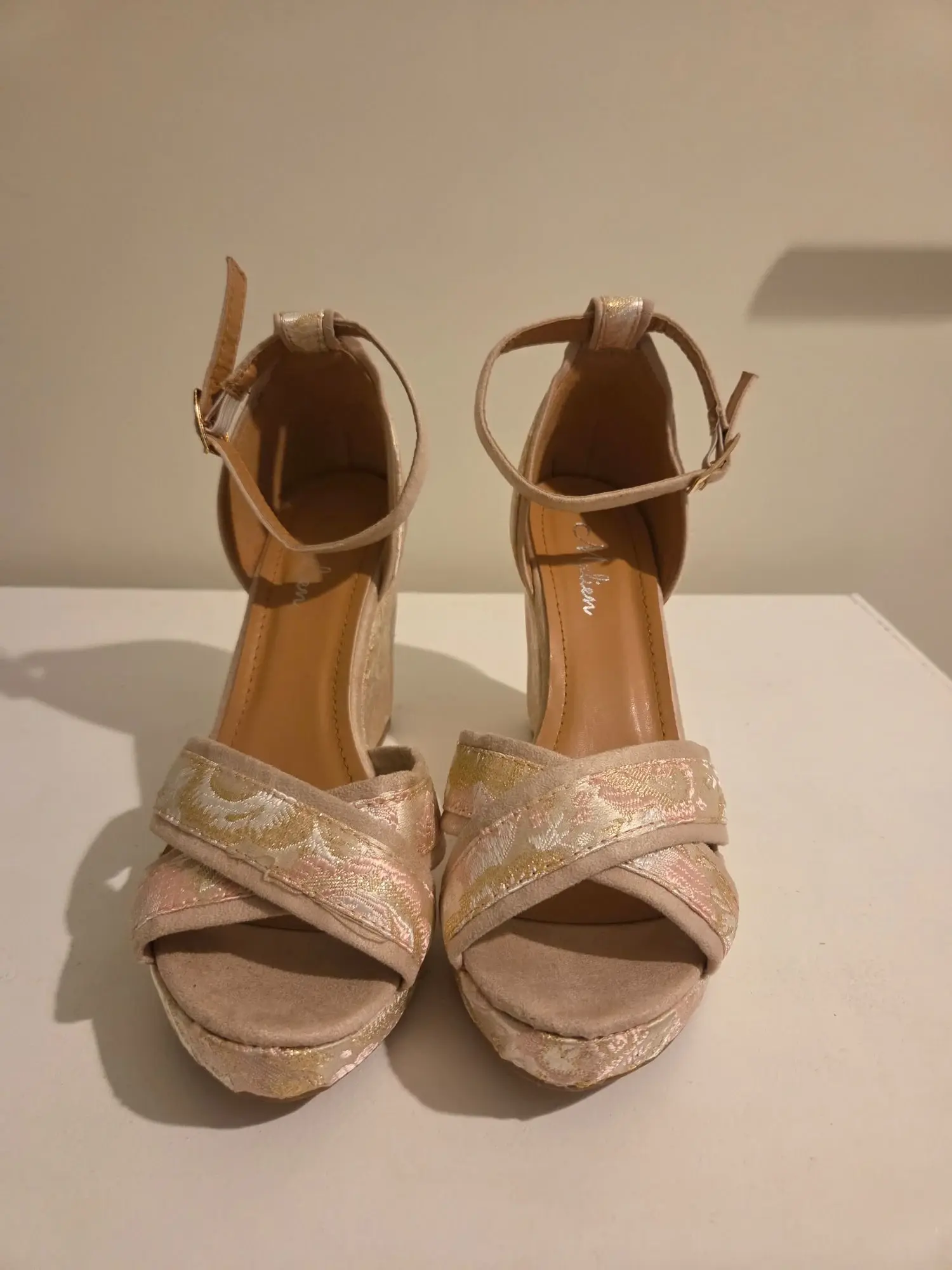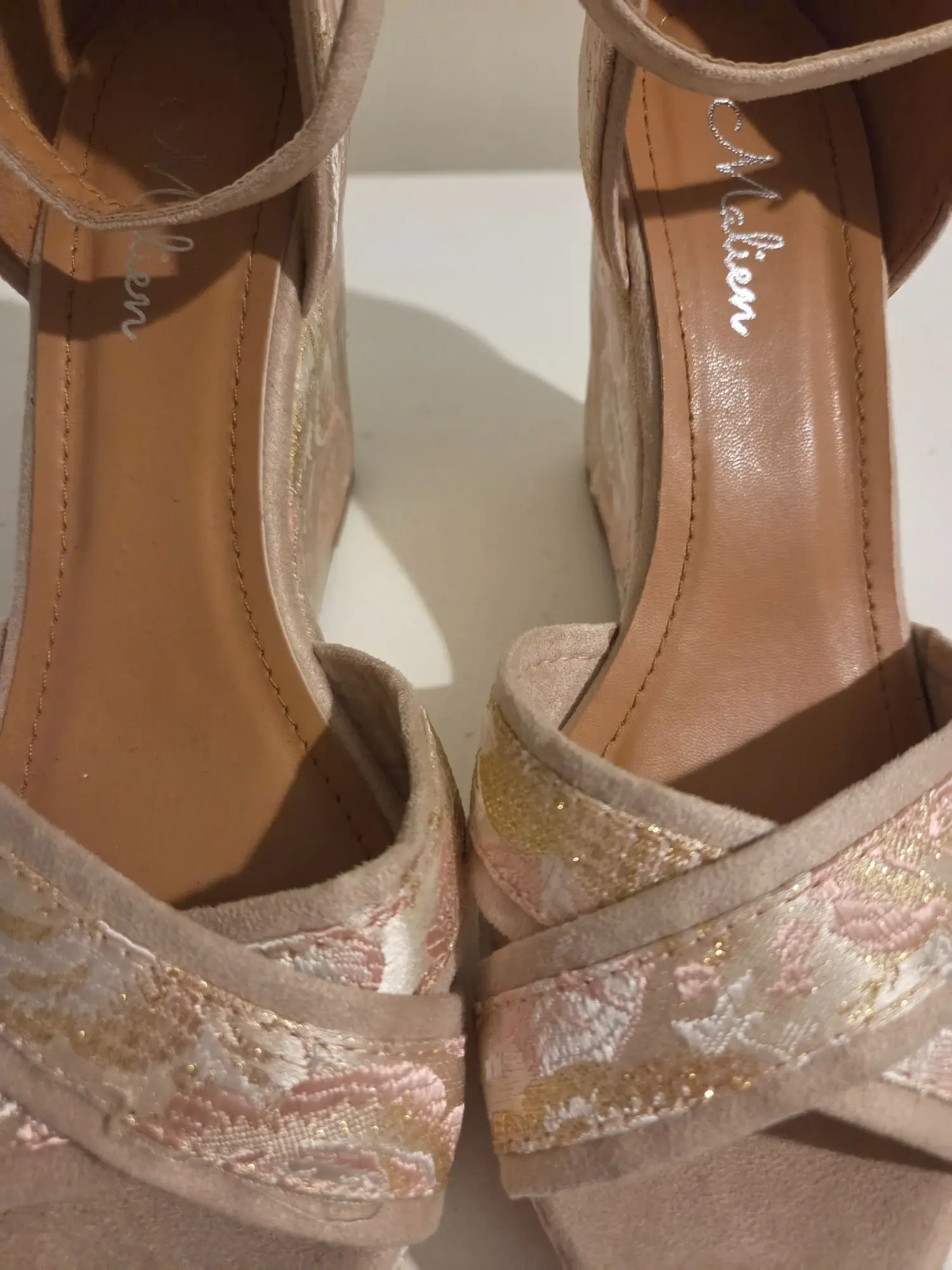 Gr. 37, ro­sa/gold/beige, neu­wer­tig
