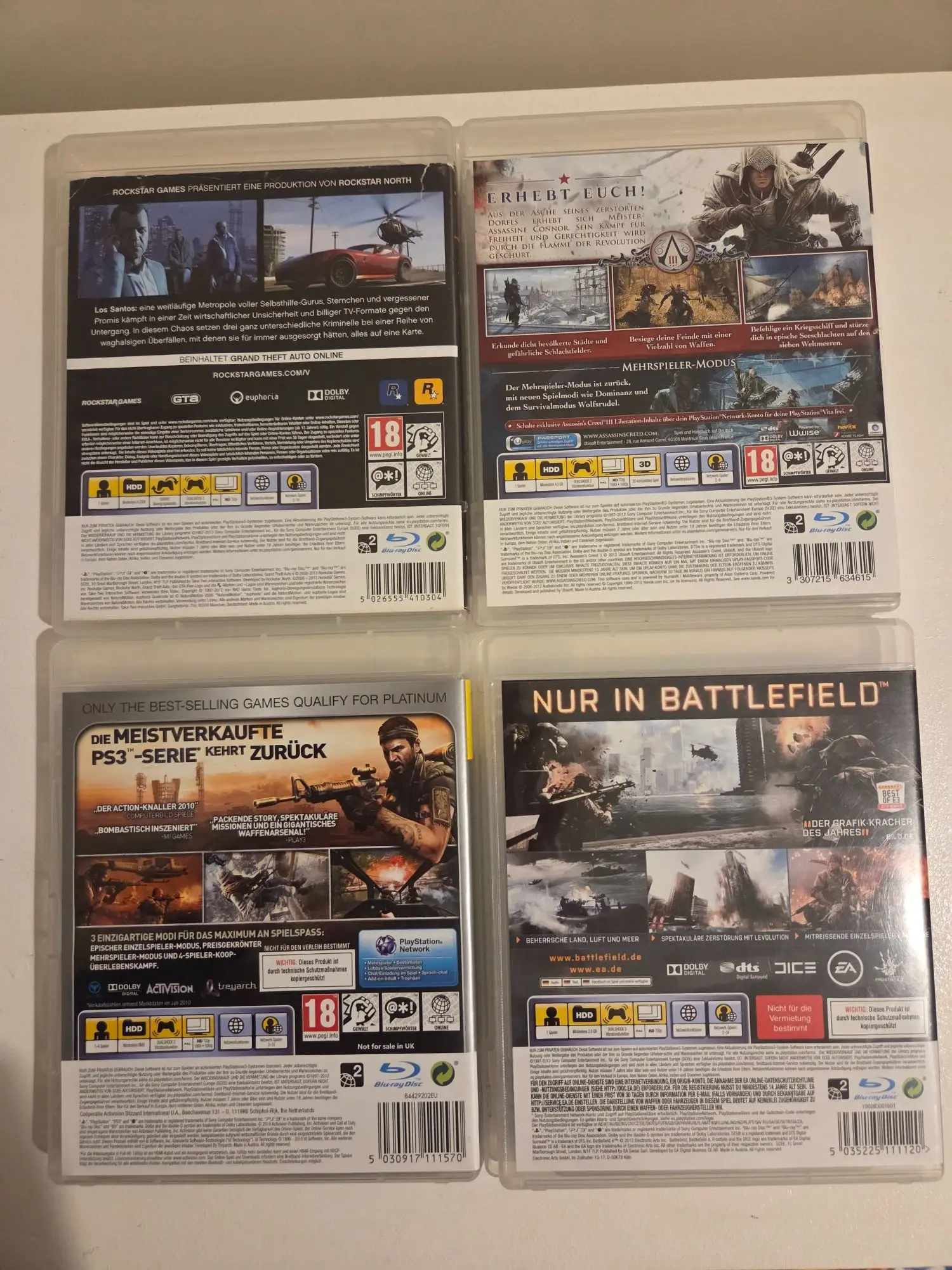 USK ab 18, Assassin's Creed 3, Grand Theft Auto 5, Battlefield 4, Call of Duty: Black Ops