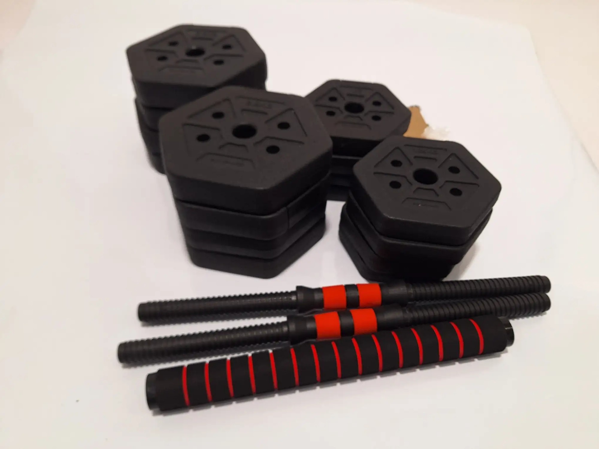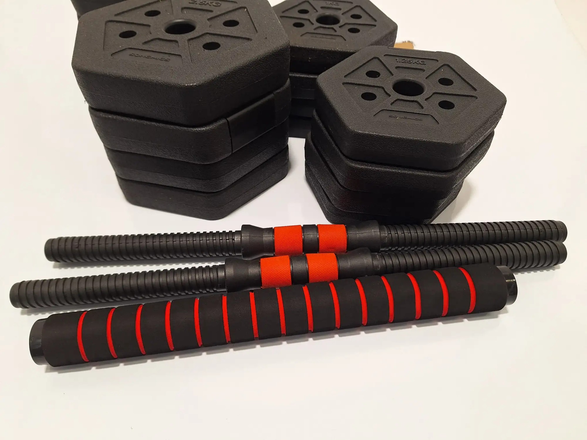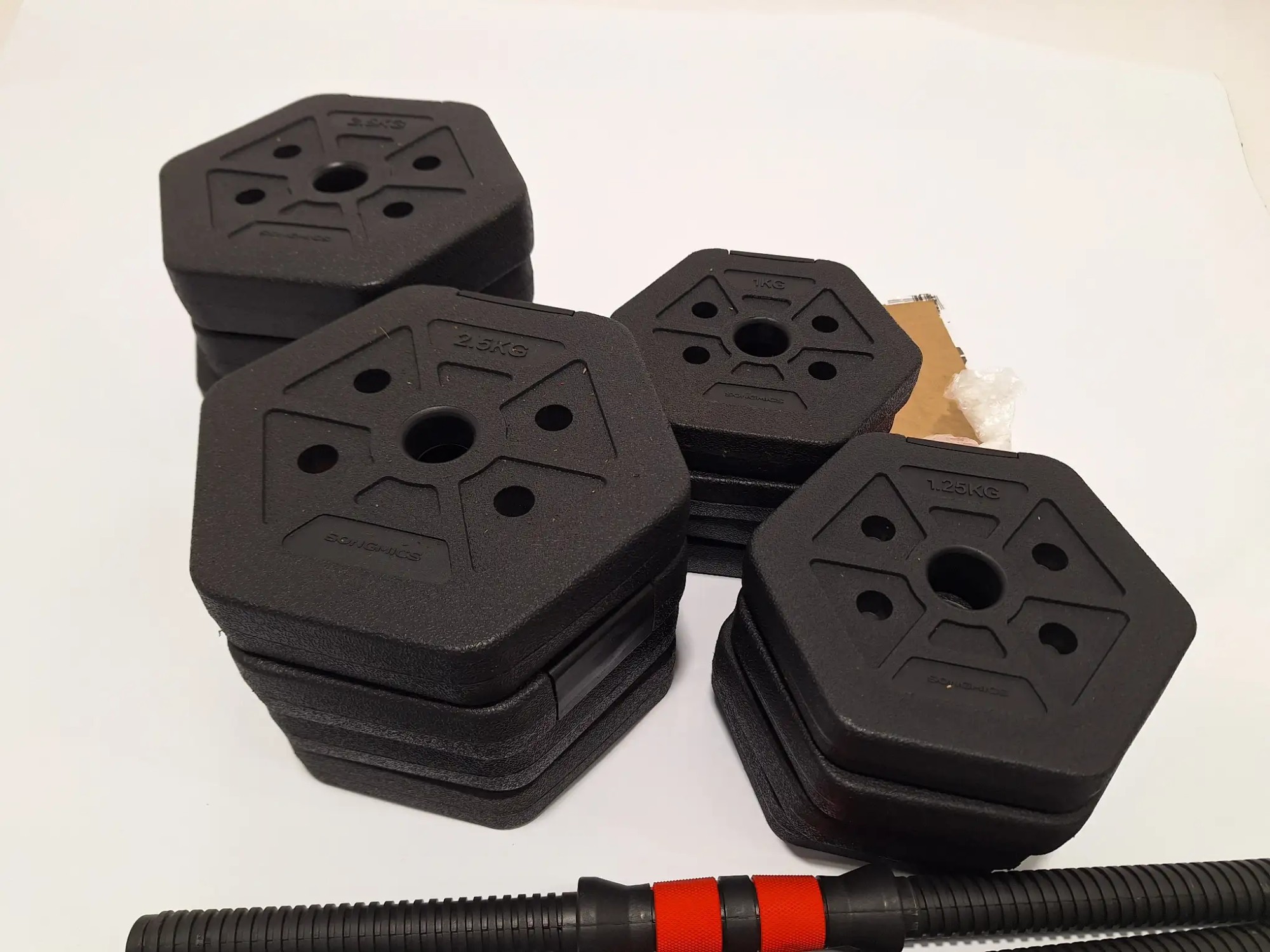 8 x 2,5 kg, 4 x 1 kg, 4 x 1,25 kg