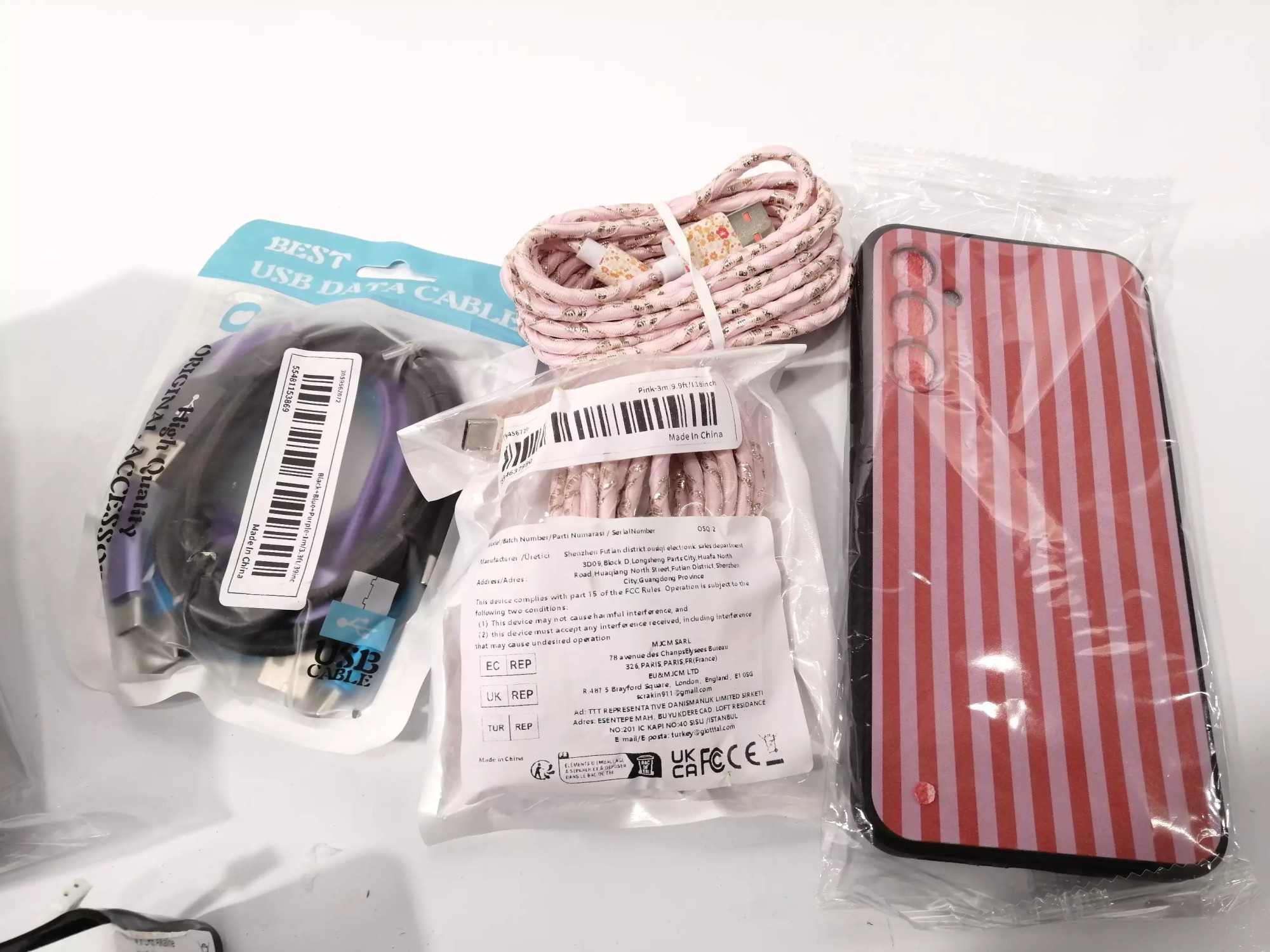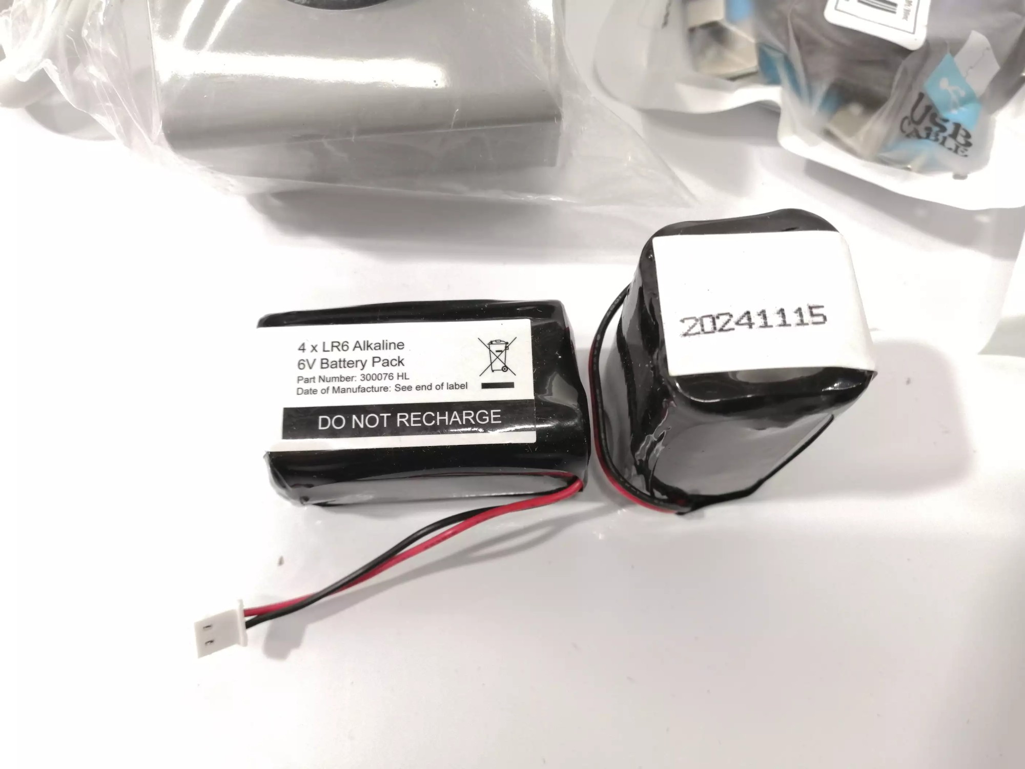 USB-Ka­bel, Ak­kus, Steck­do­se mit Schal­ter