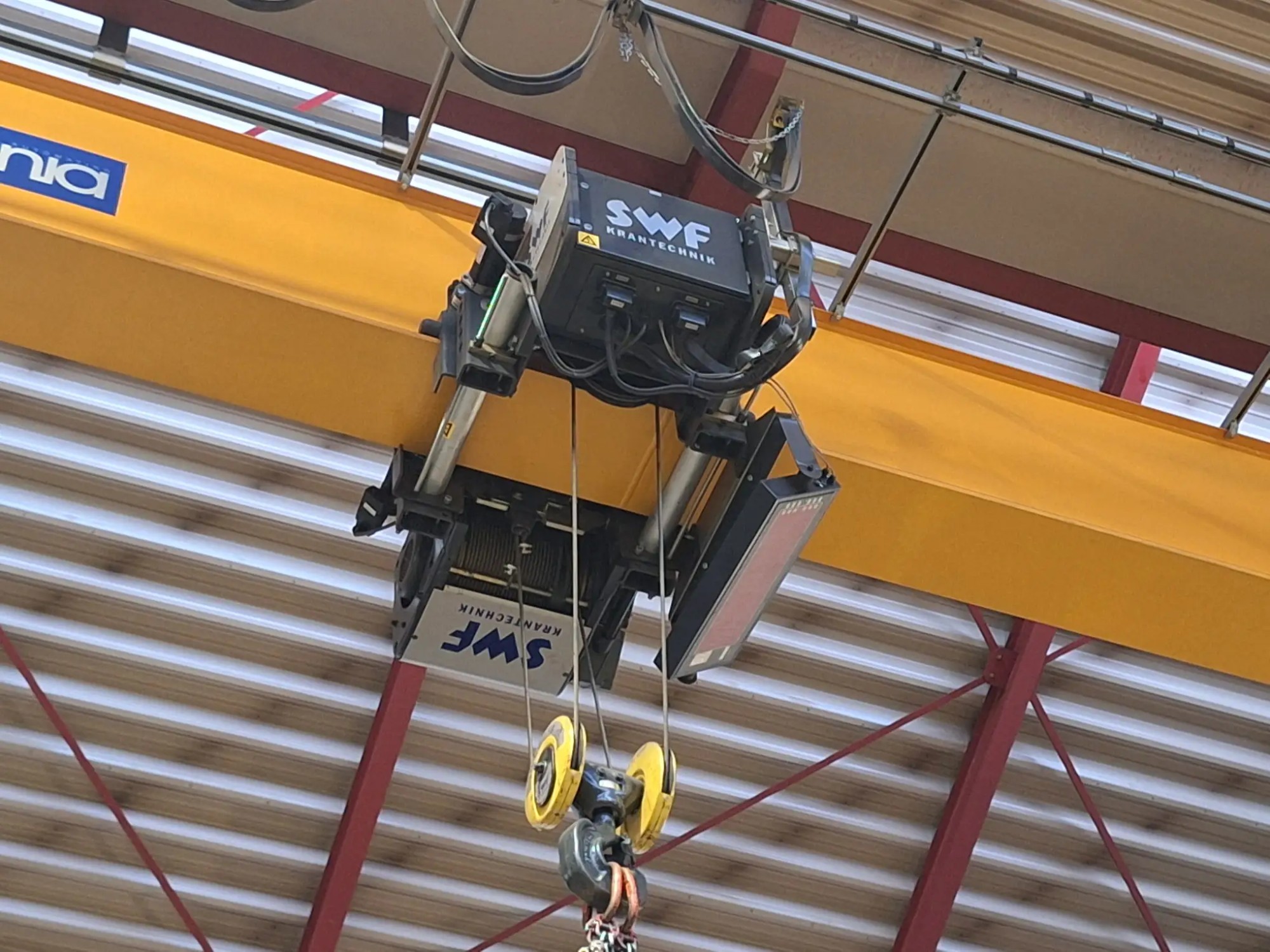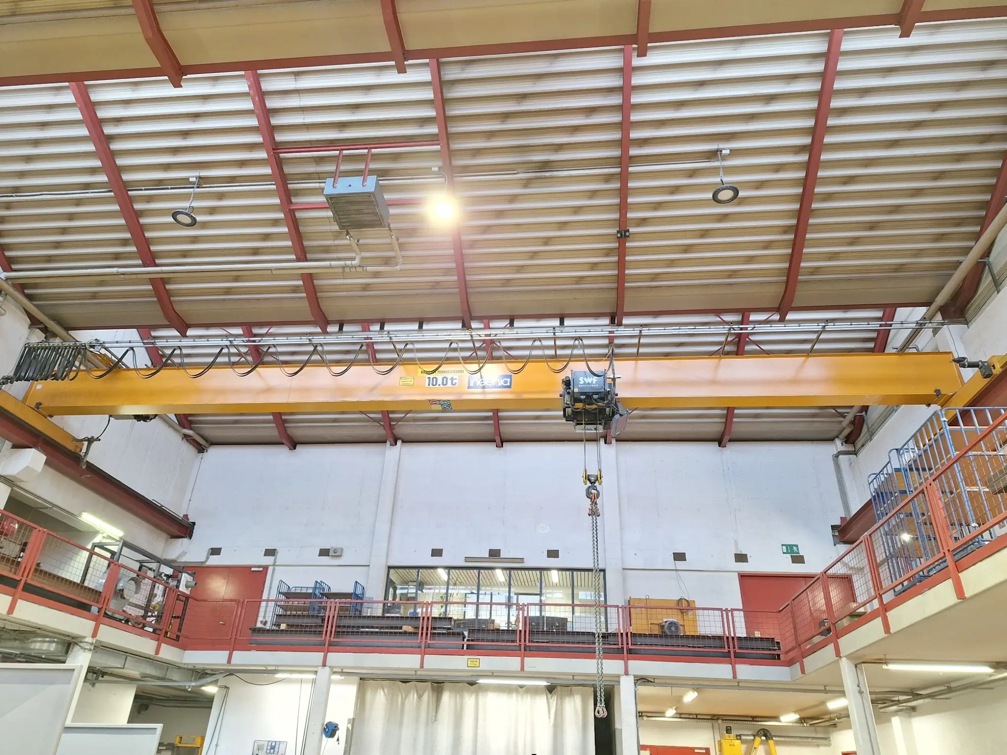 Tragkraft 10 t, mit E-Seilzug SWF inkl. Schaltbirne und aufgebauter Kranwaage mit Display, Spannweite ca. 18 lfm, ohne Laufschienen
