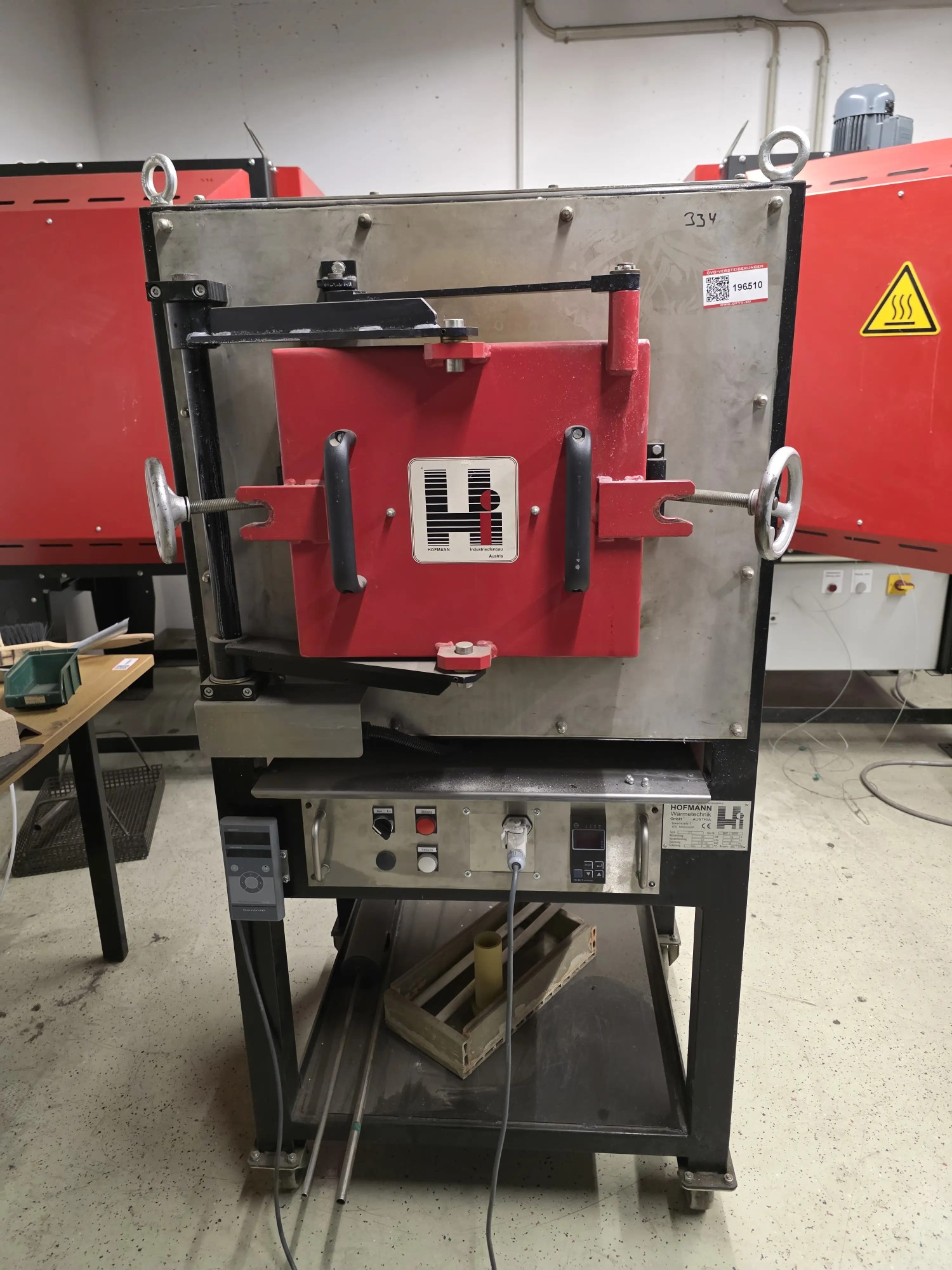 K1 rot, SN: 99417/2011106, Heizleitung 6,6 kW, Bj. 99 und 11max. 1300°C, inkl. Steuerung, Kammer innen 350 x 350 x 400 mm